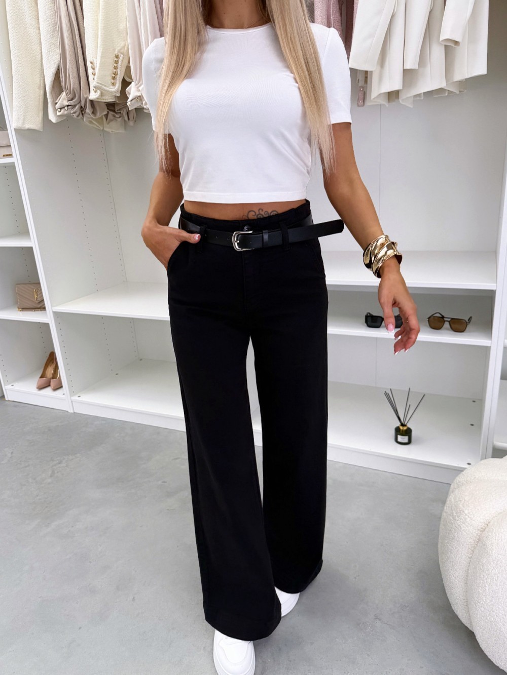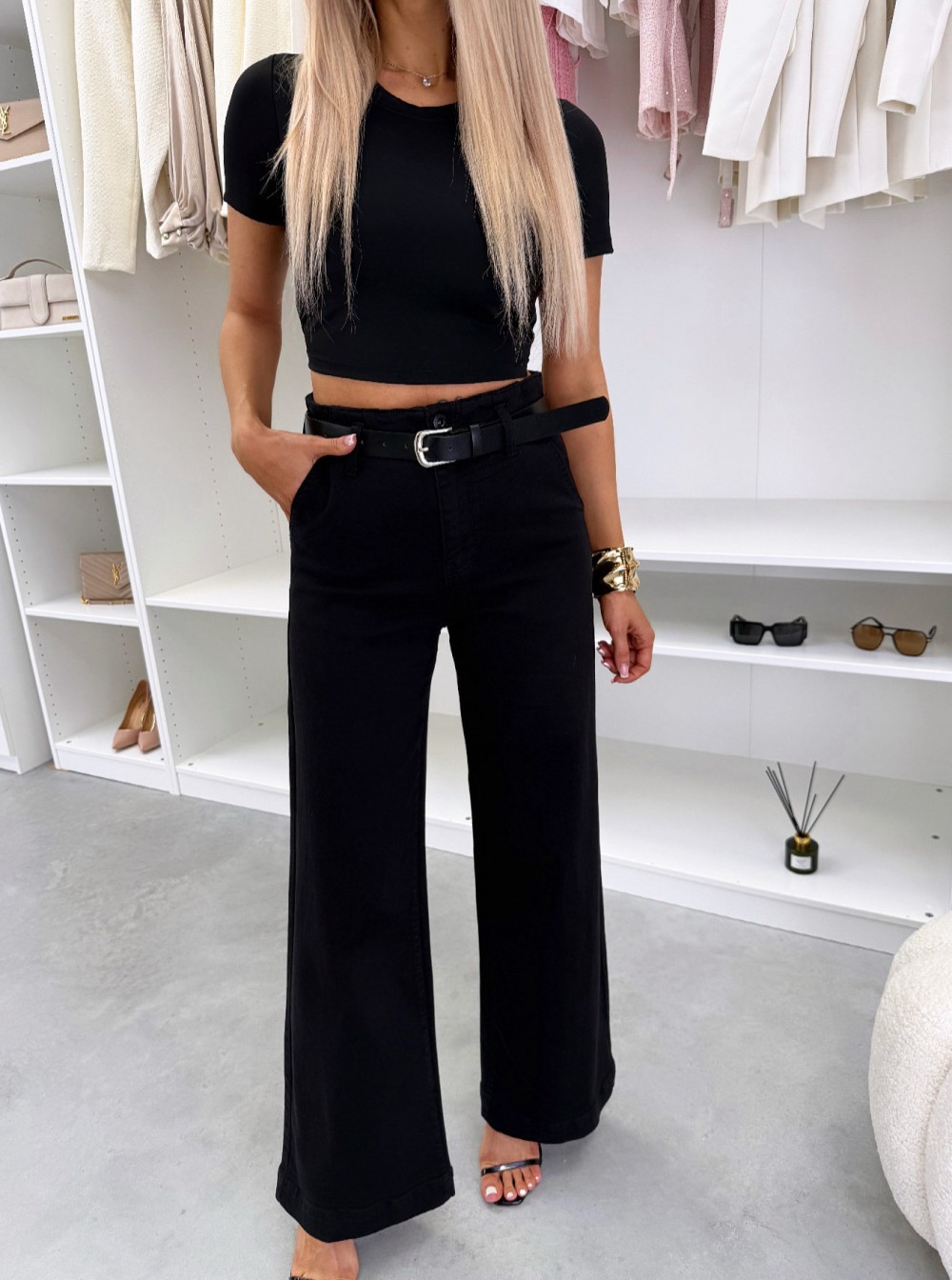 Vööga sirgelõikelised pehmed stretch teksad (S, Must)