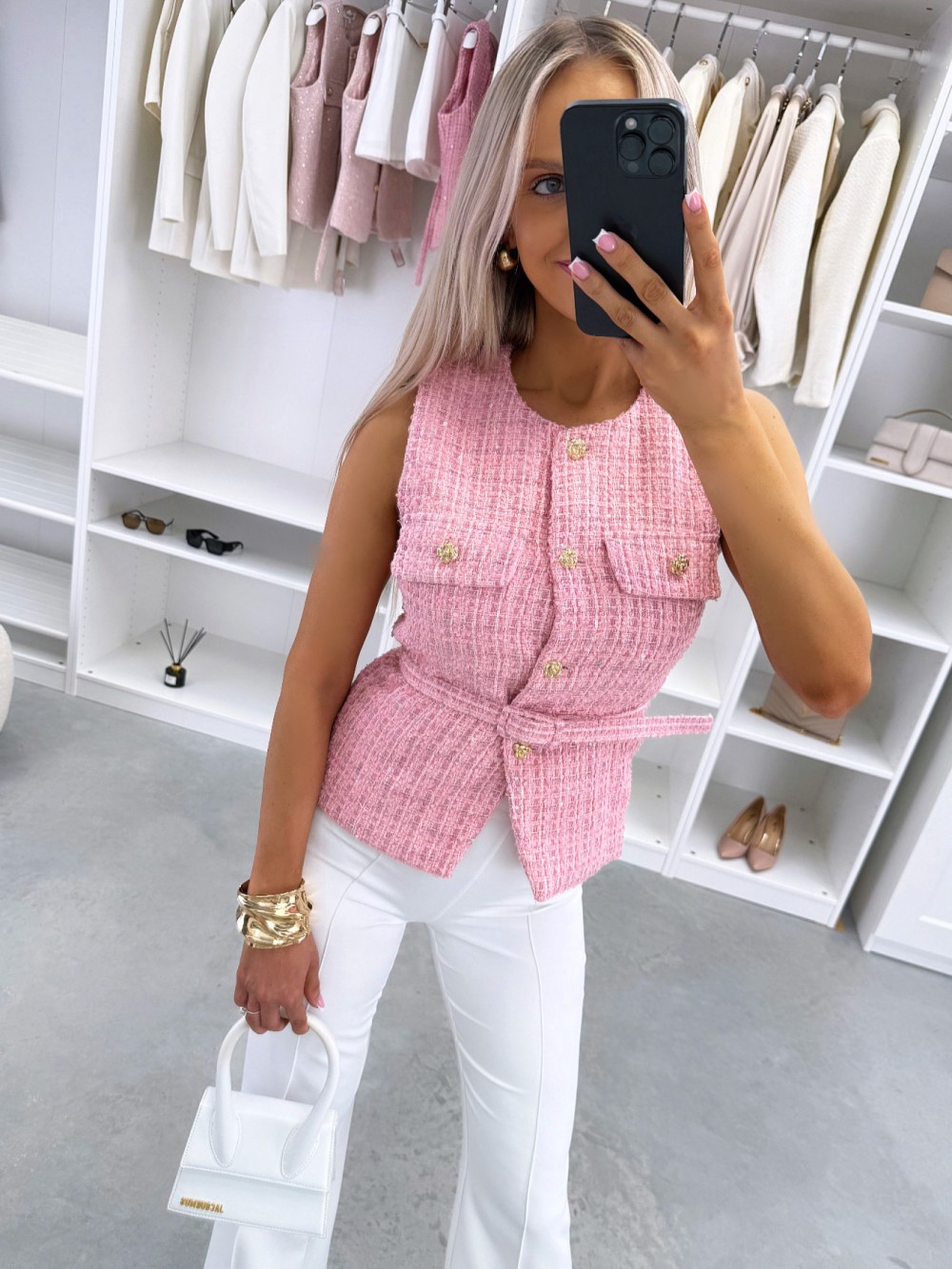 Kuldsete nööpidega vest (Roosa, XS/S)