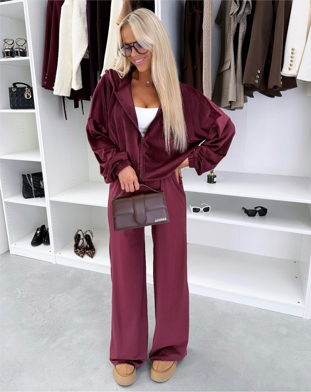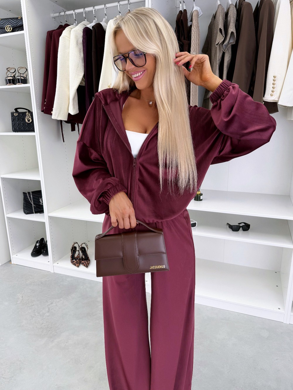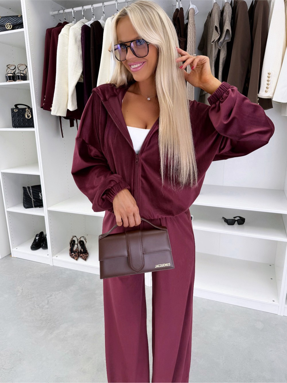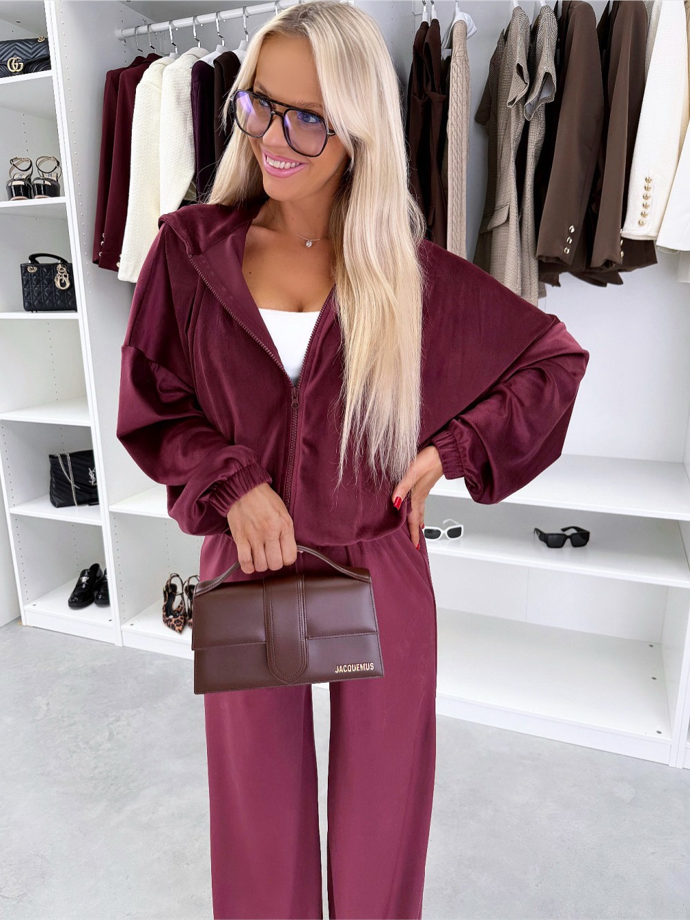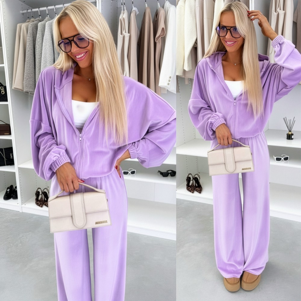 Dviejų dalių veliūrinis sportinis kostiumas (Vienas dydis, Violetinė)