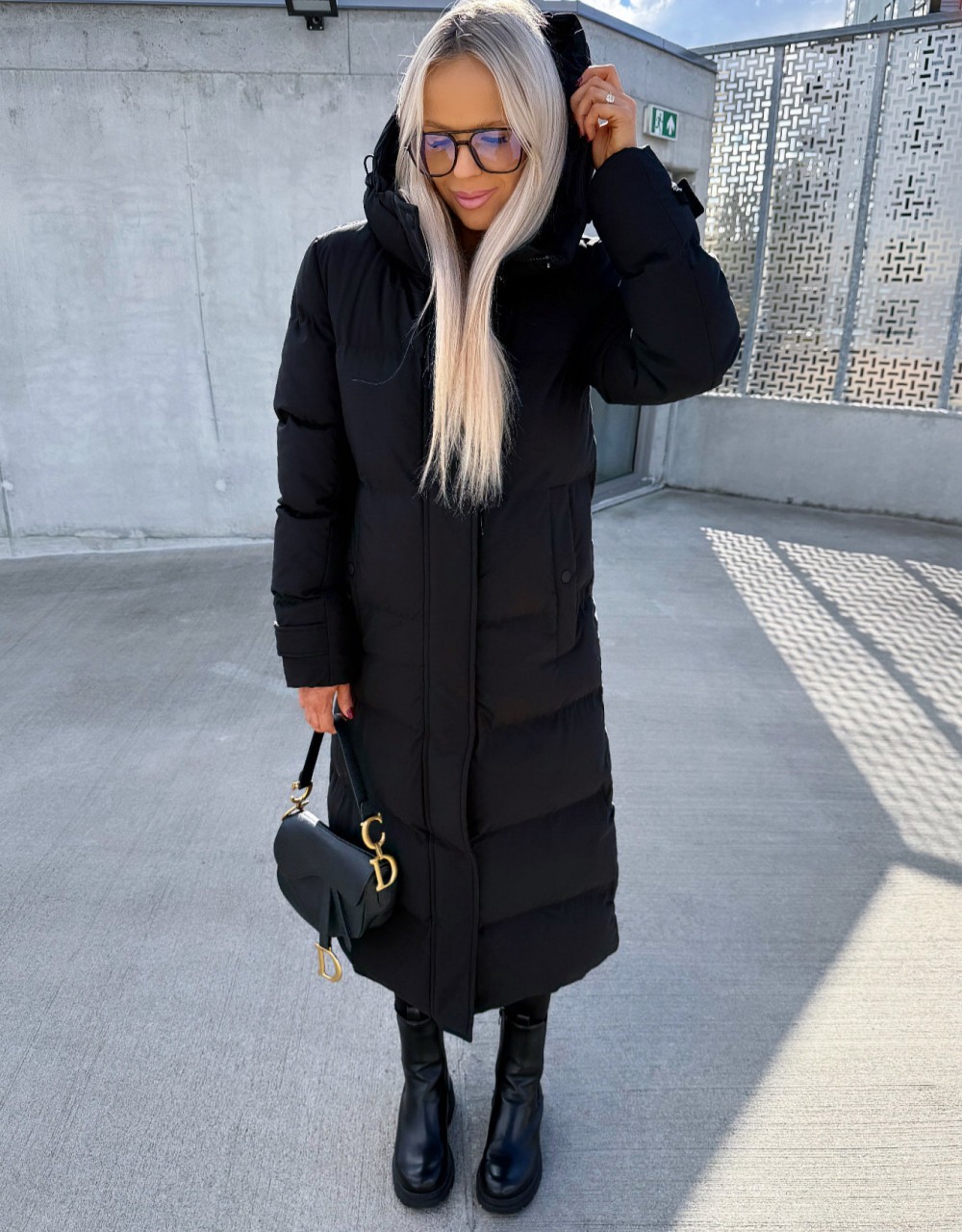 Vandeniui atsparus ilgesnis parkas (M, Juoda)
