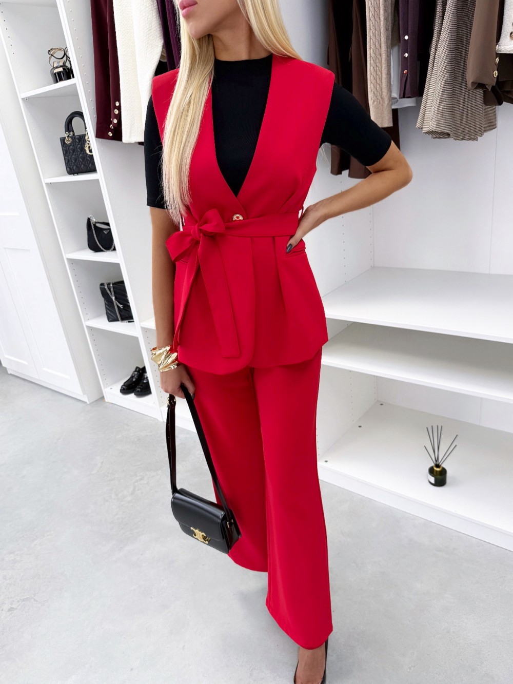 Taisna piegriezuma bikses ar ērtu jostasvietu (Sarkans, XS/S)