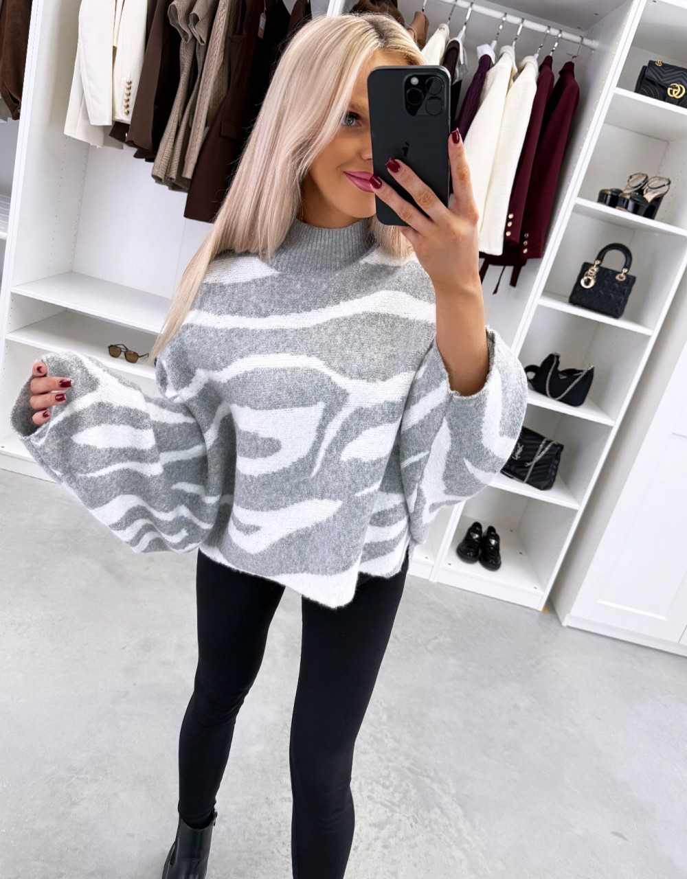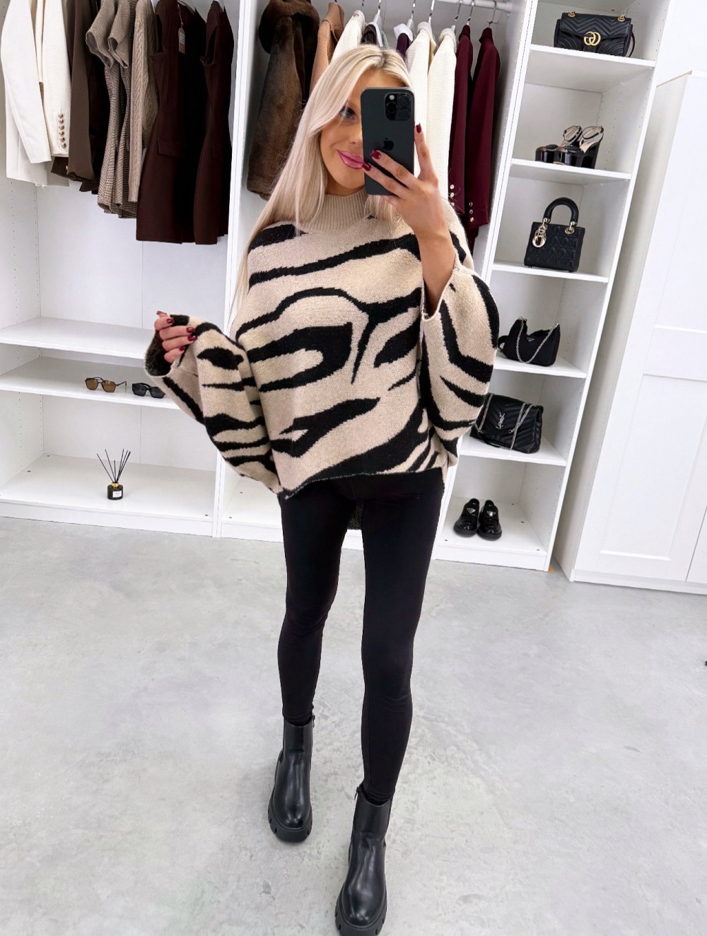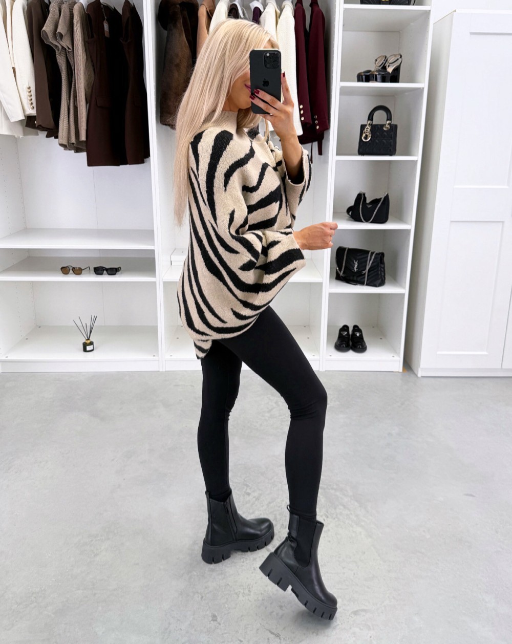 Adījuma džemperis ar pagarinātu aizmugures malu (Viens izmērs, Bēša)