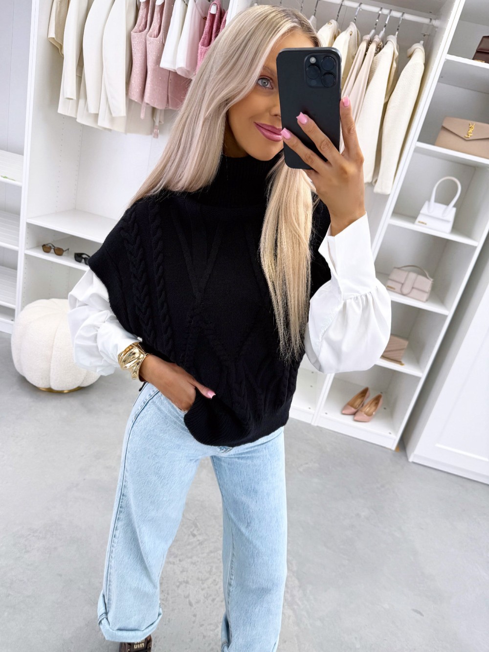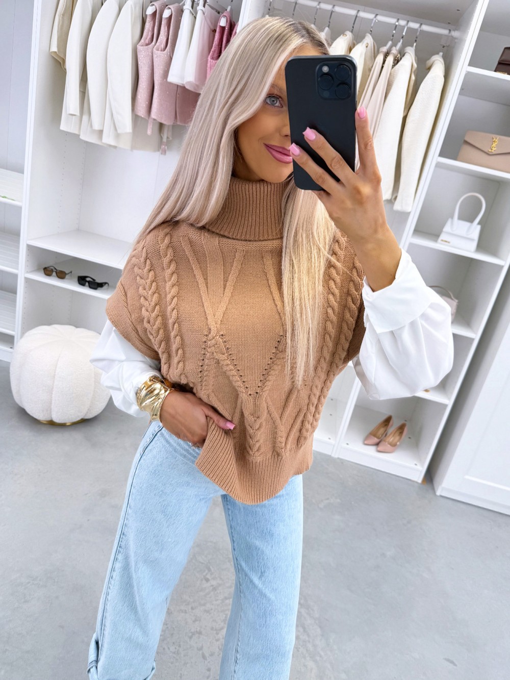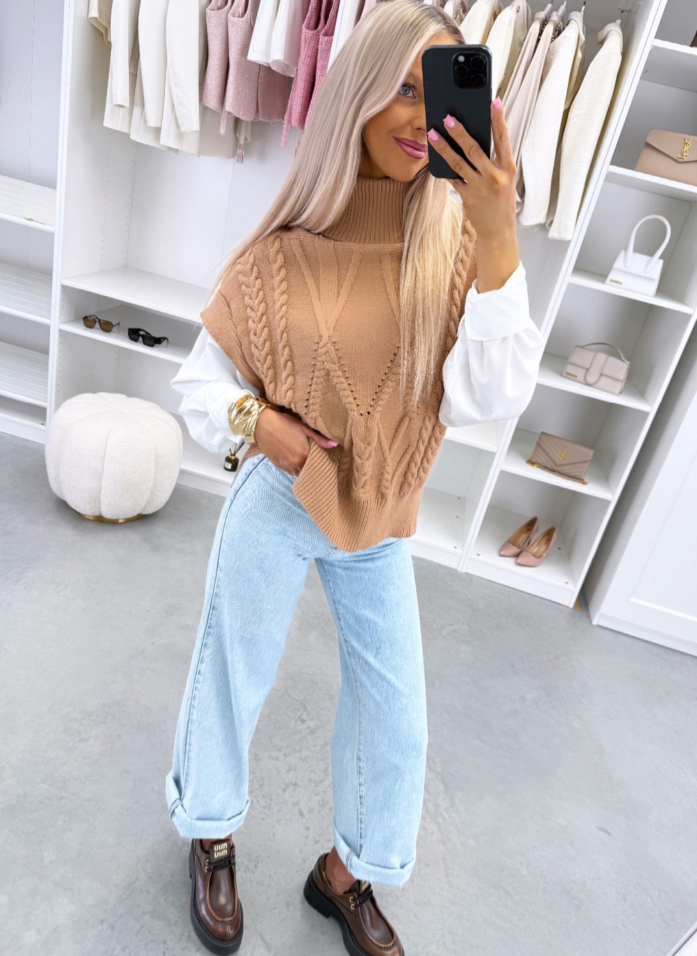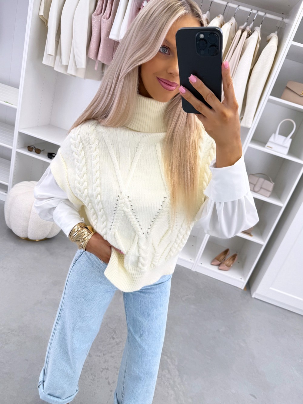 Balts adīts vests ar oderi (Viens izmērs, Gaiši bēša)