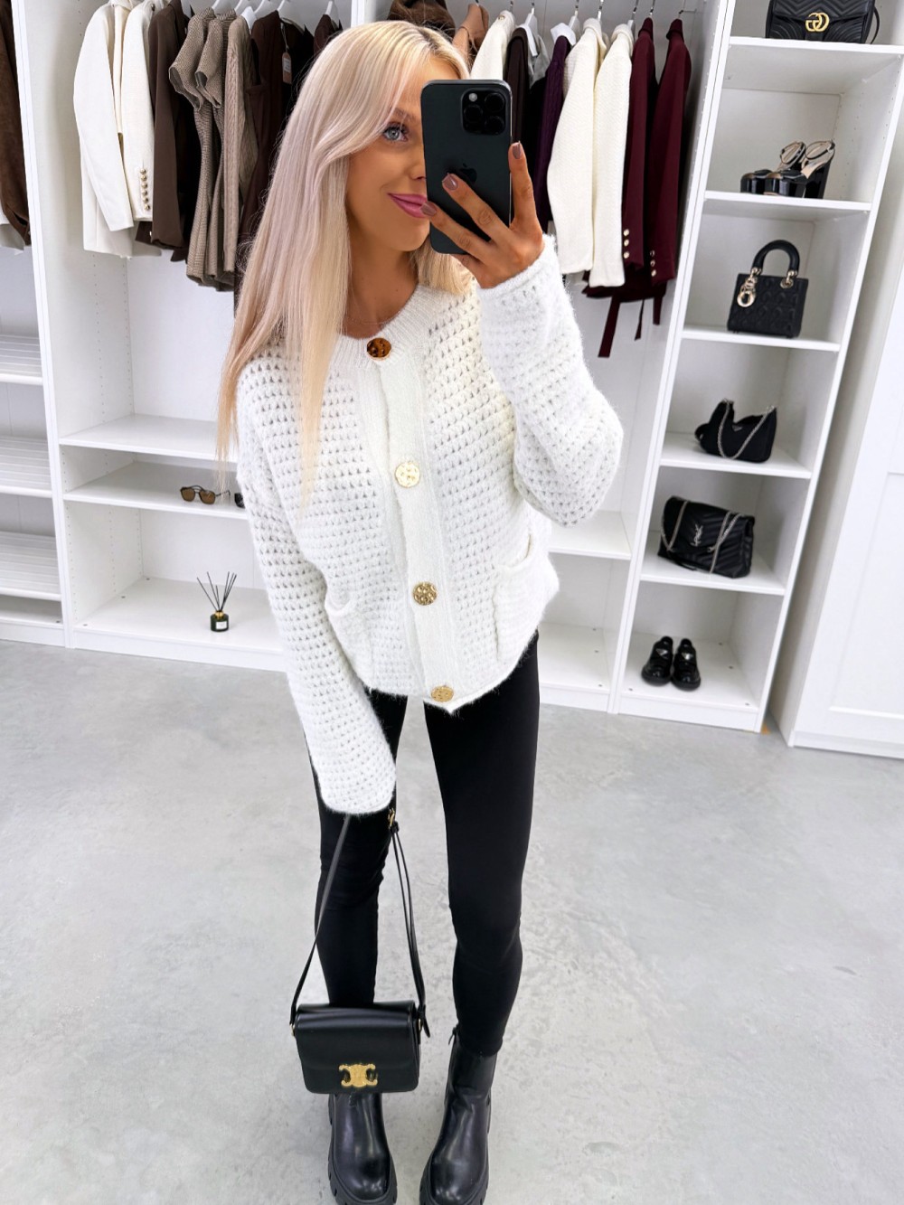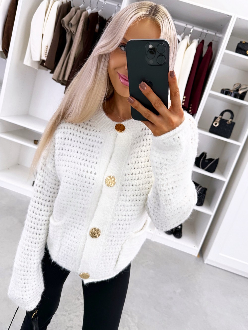 Kardigans ar zelta toņa pogām (Viens izmērs, Balts)