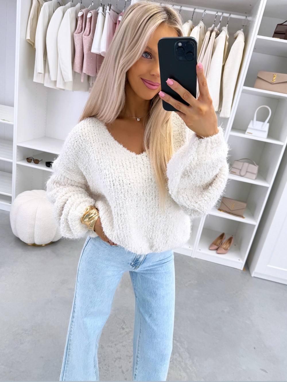 Maigs adījuma džemperis (Viens izmērs, Gaiši bēša)