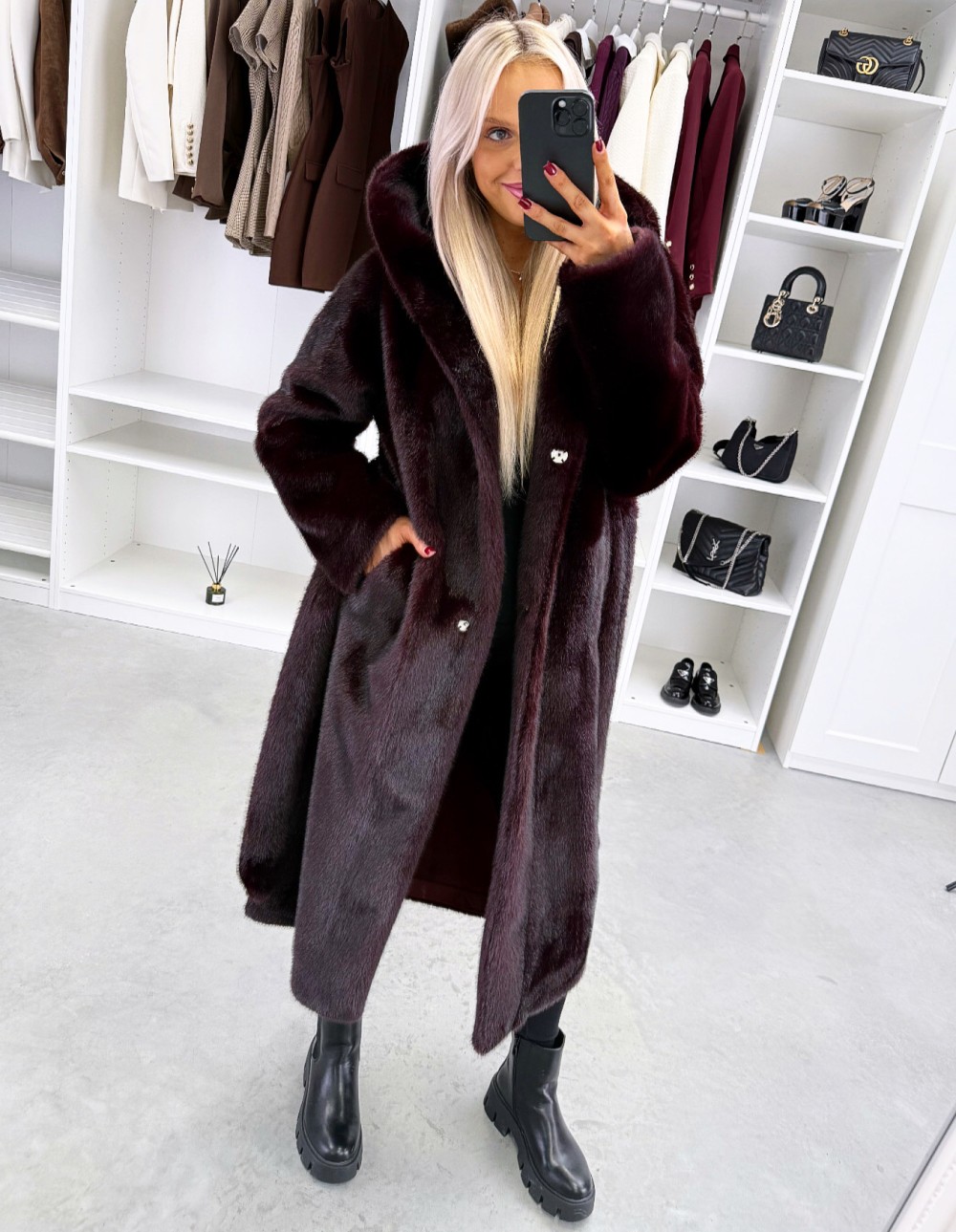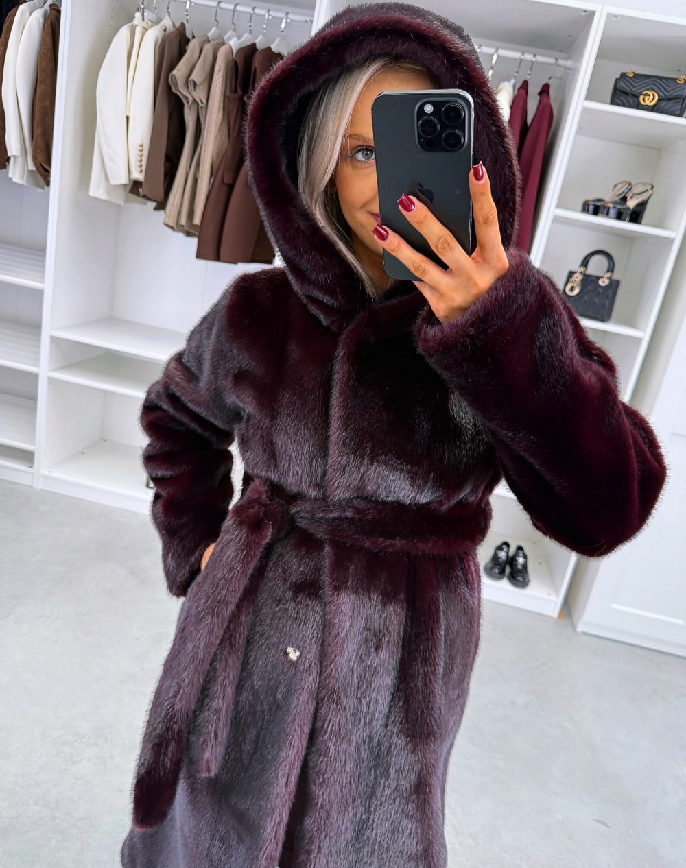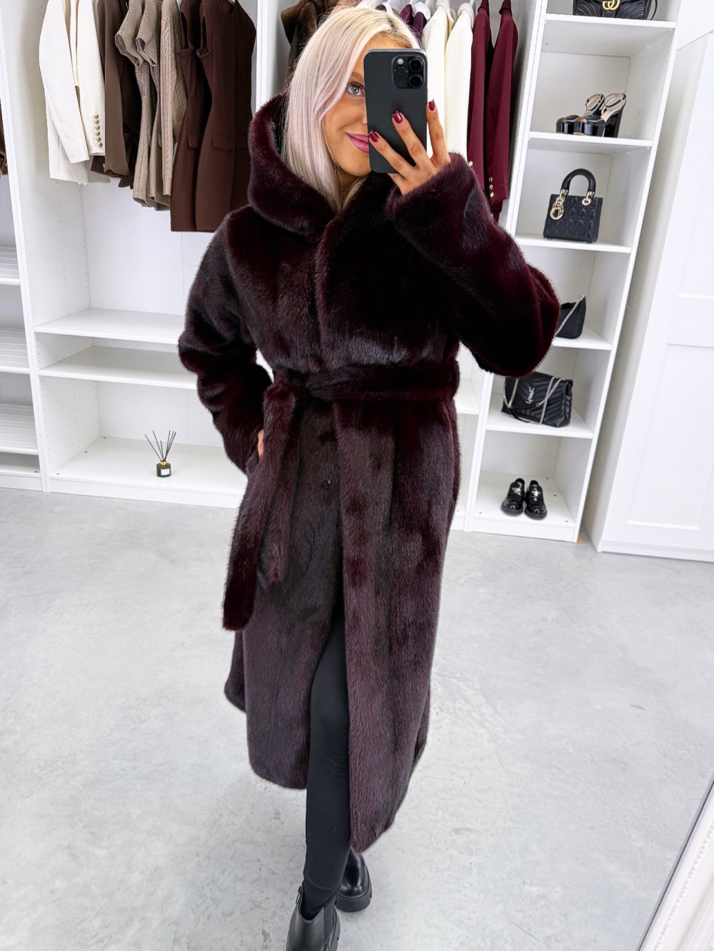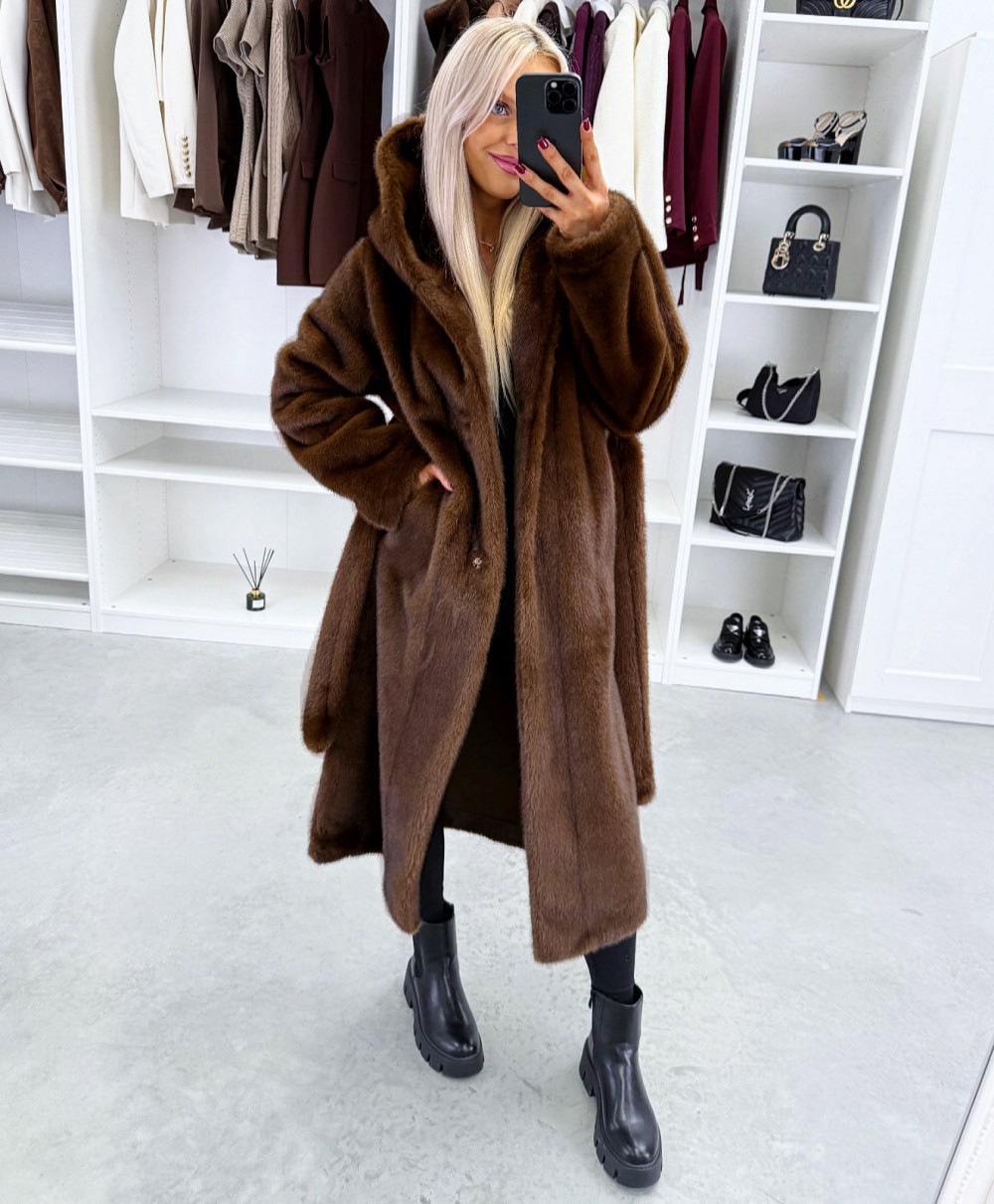 Grezns ziemas mētelis ar kapuci (Viens izmērs, Tumši violets)