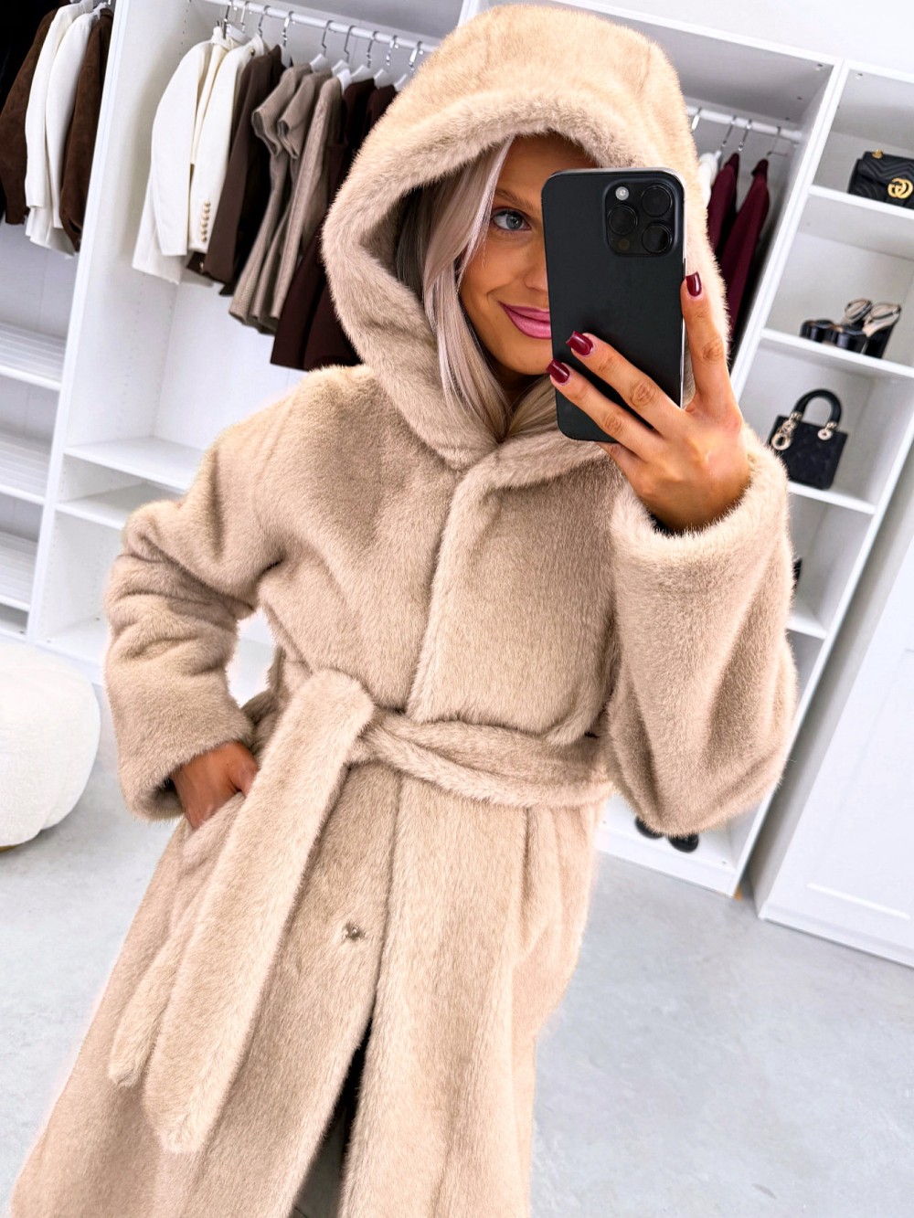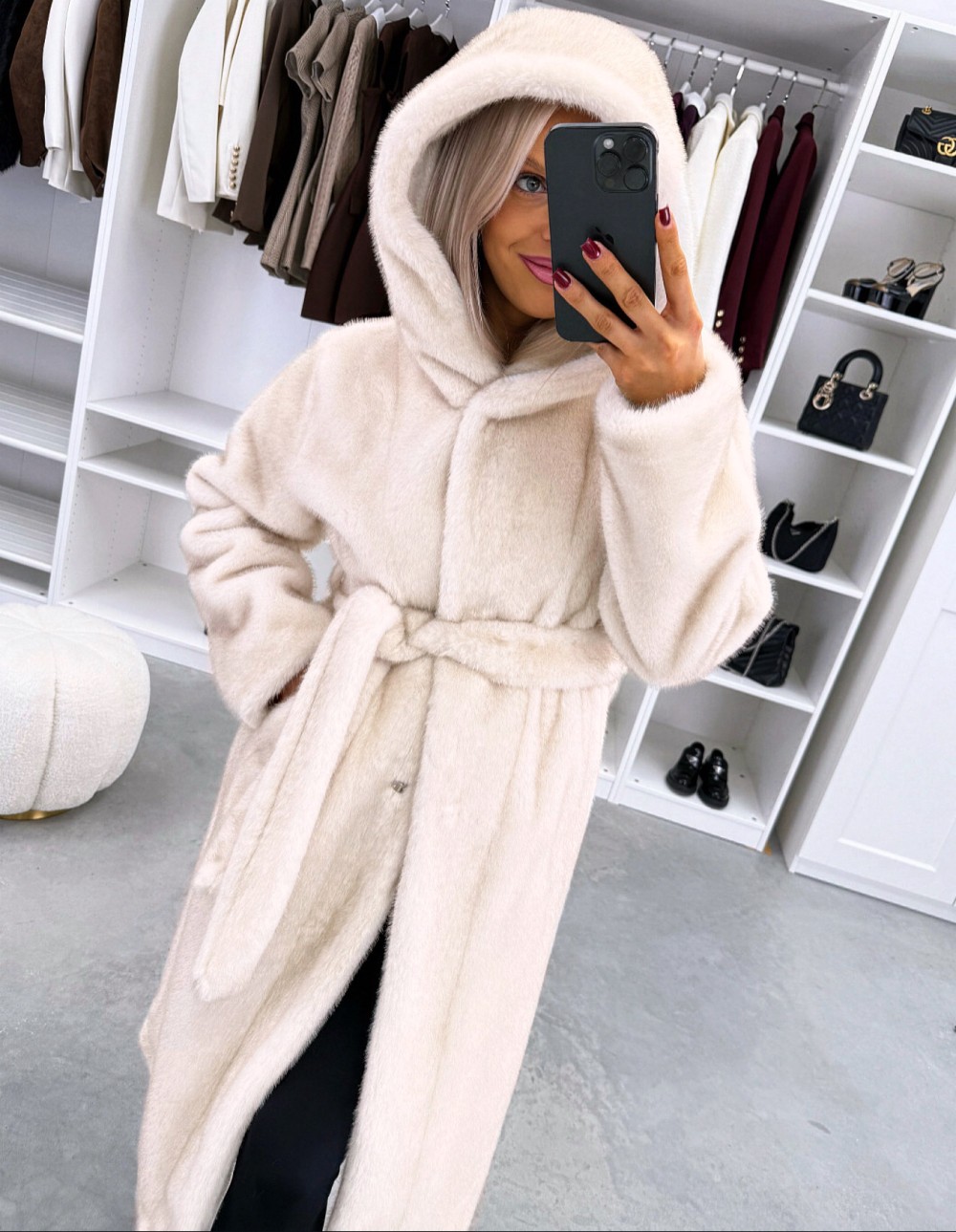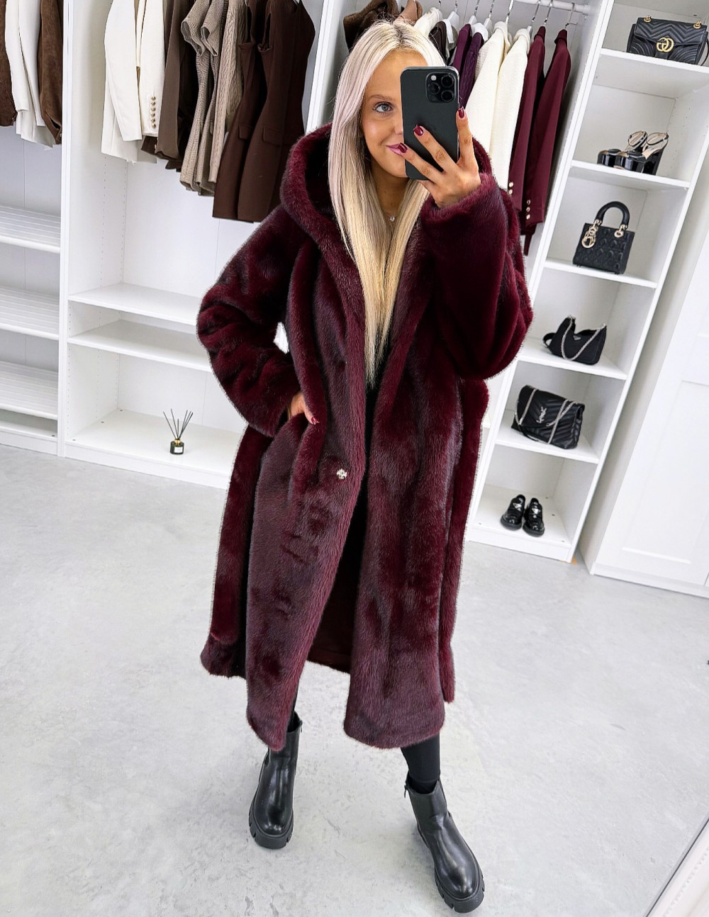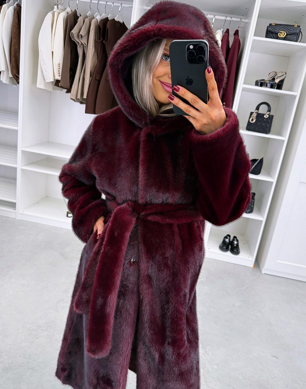 Grezns ziemas mētelis ar kapuci (Viens izmērs, Tumši violets)