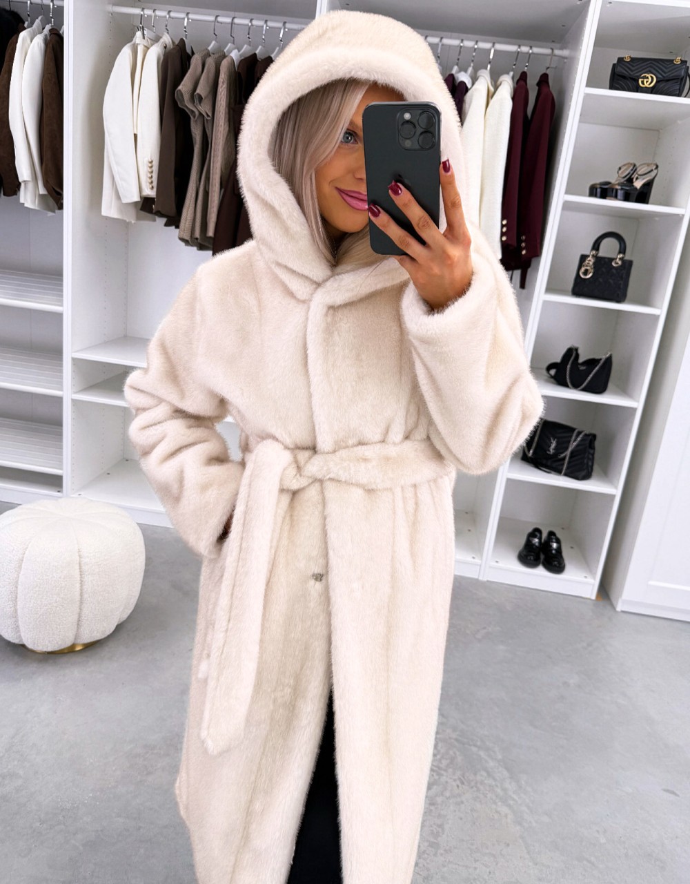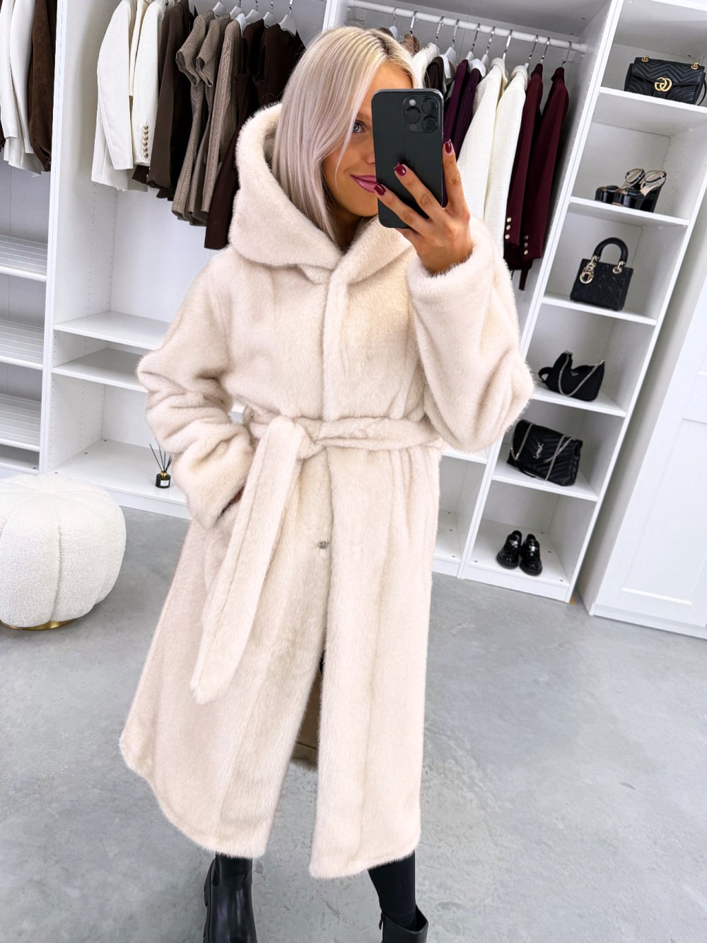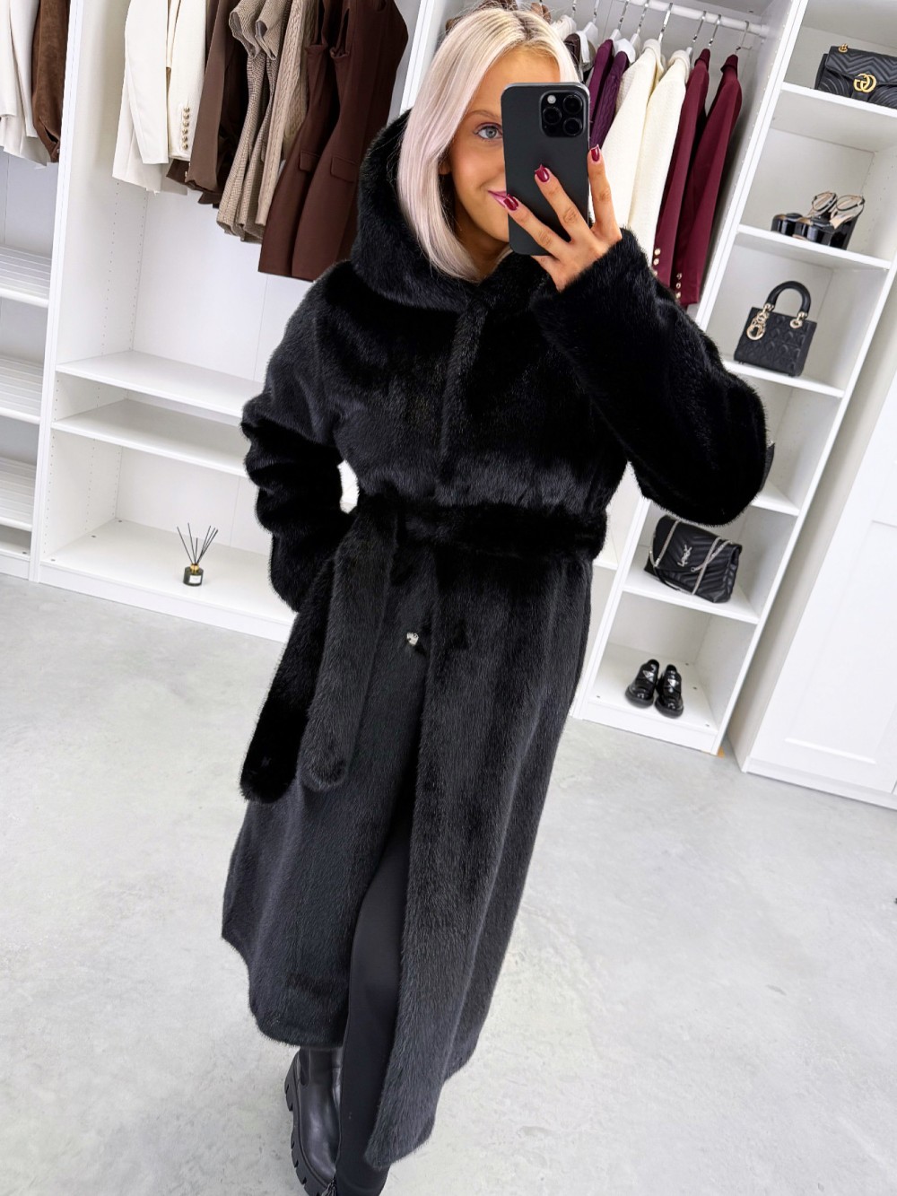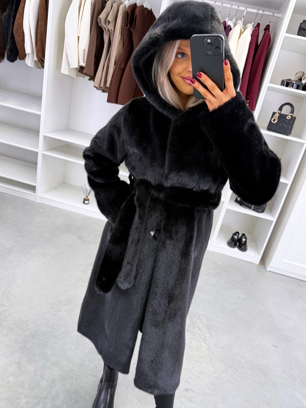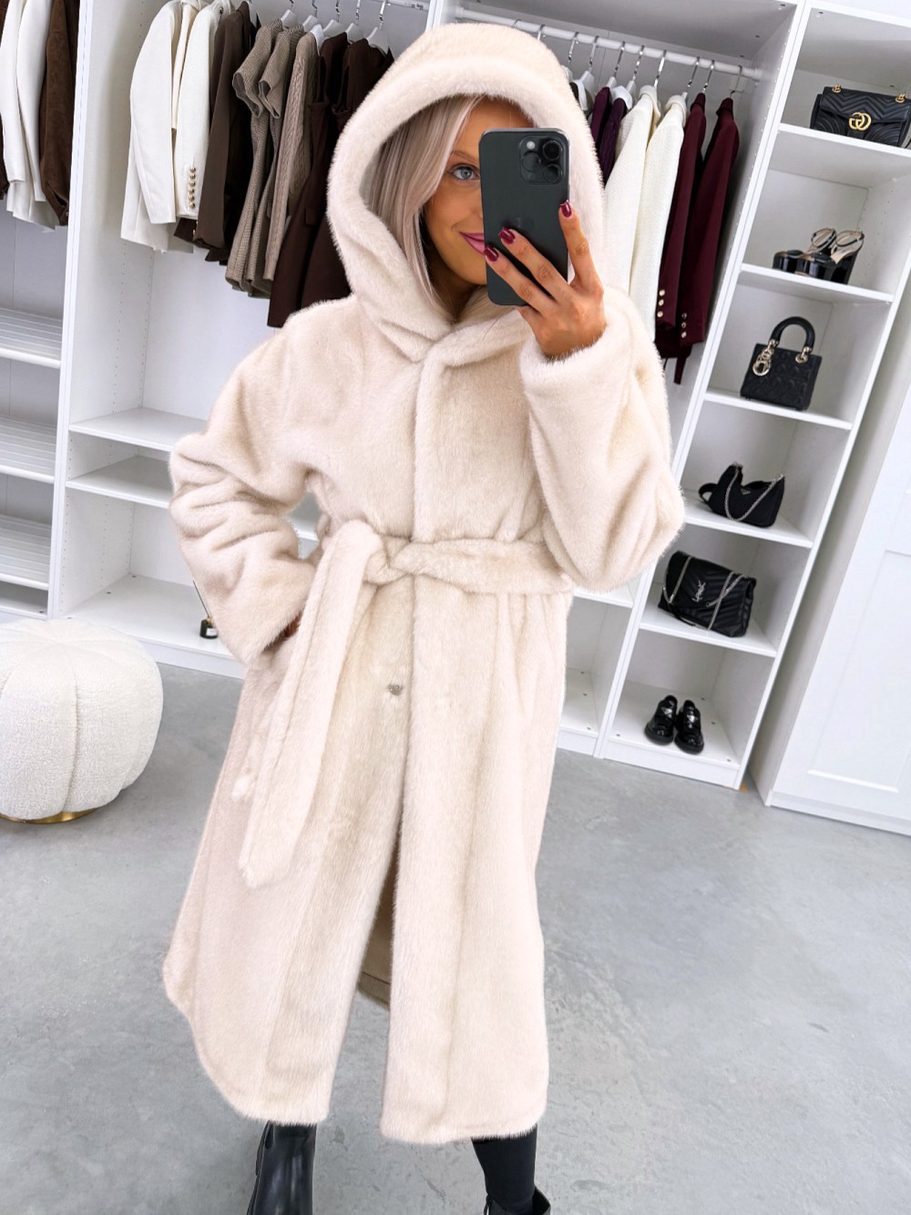 Grezns ziemas mētelis ar kapuci (Viens izmērs, Tumši violets)
