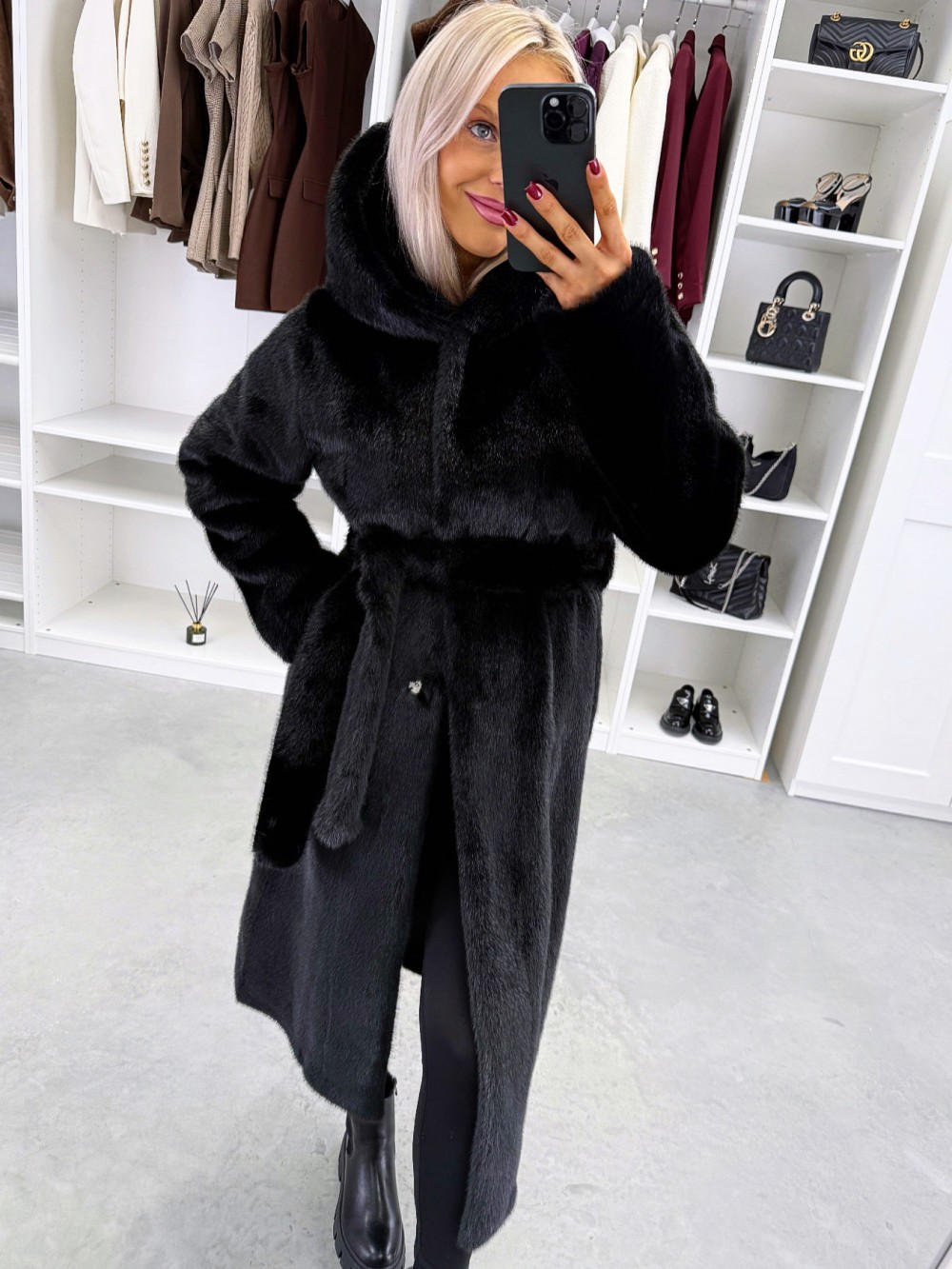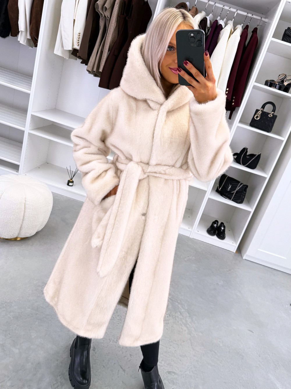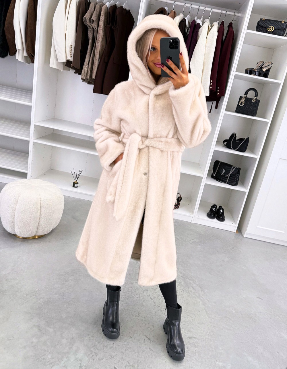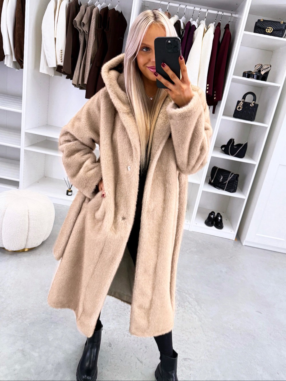 Grezns ziemas mētelis ar kapuci (Viens izmērs, Tumši violets)