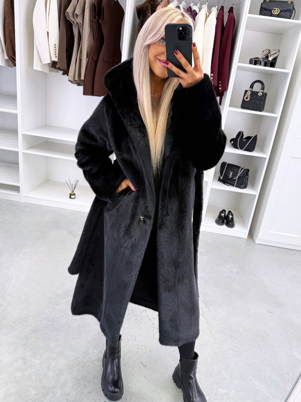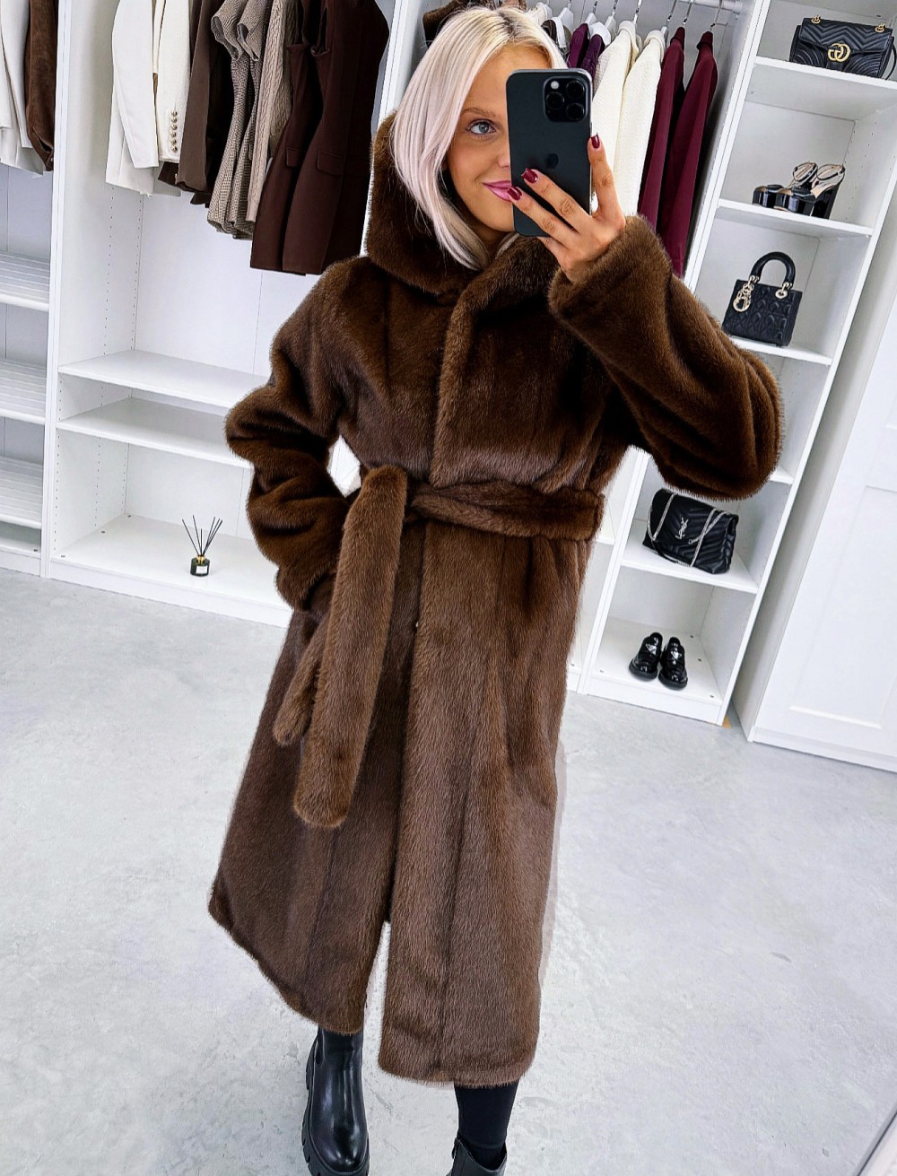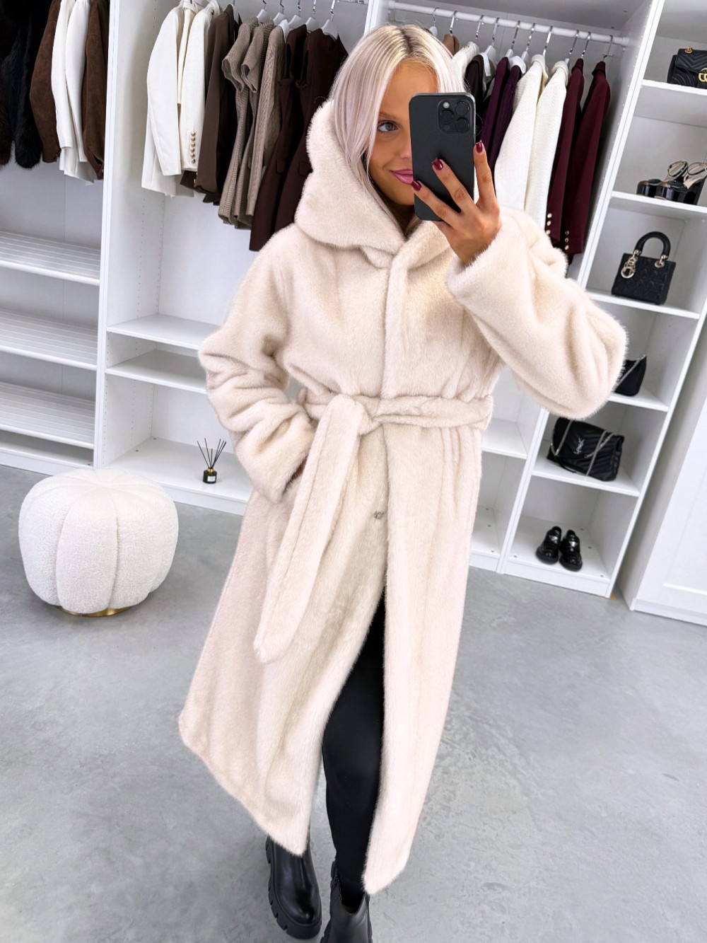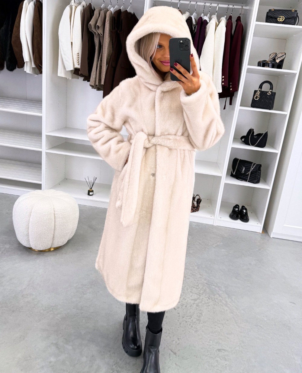 Grezns ziemas mētelis ar kapuci (Viens izmērs, Tumši violets)