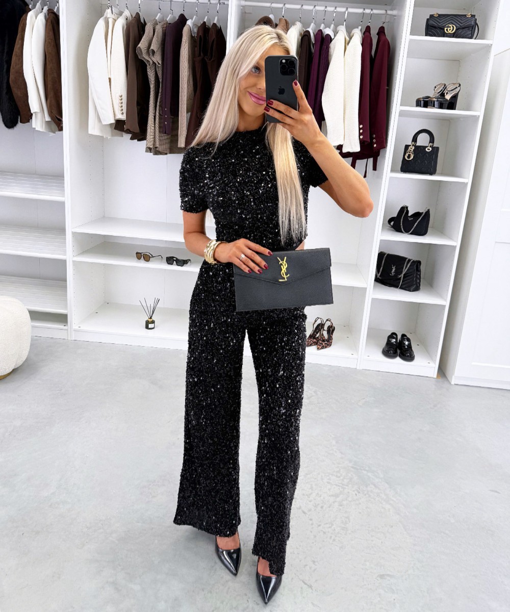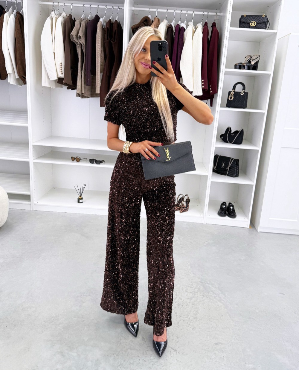 Krótki top z miękkimi cekinami (Brązowy, XS/S)