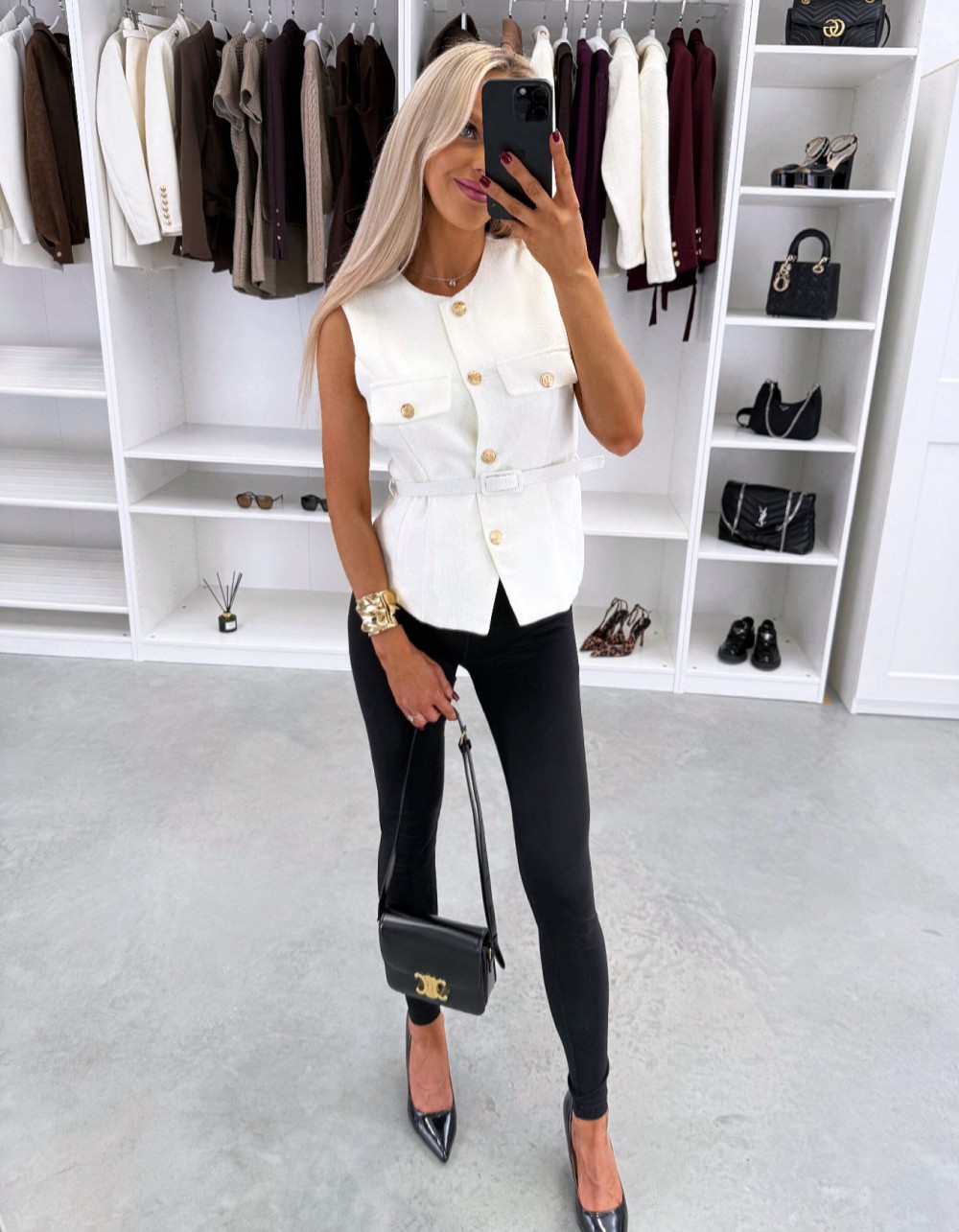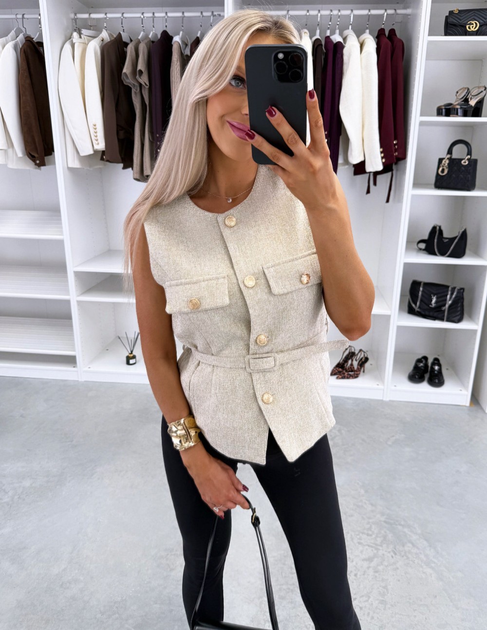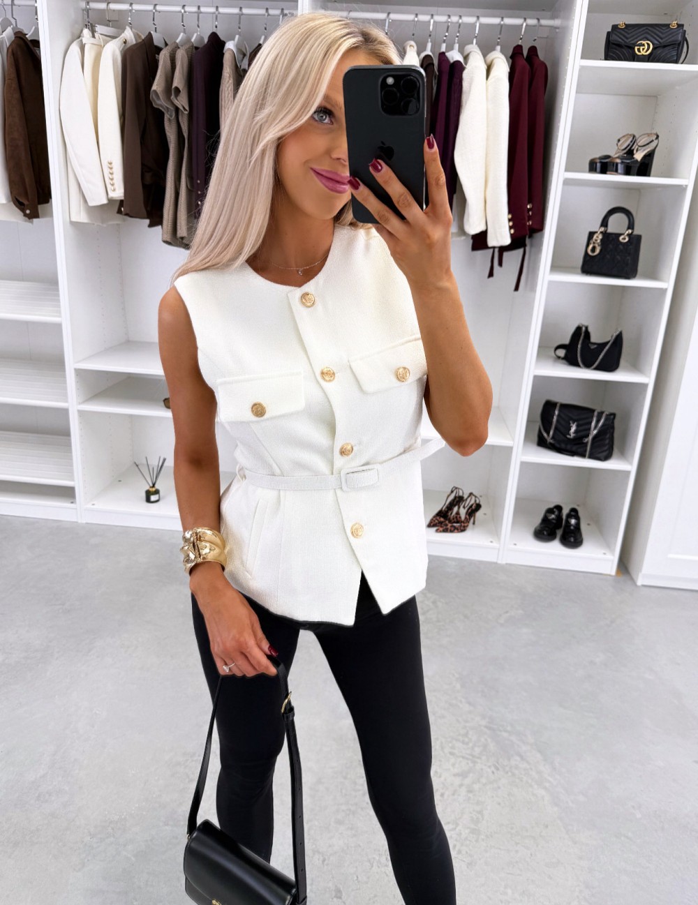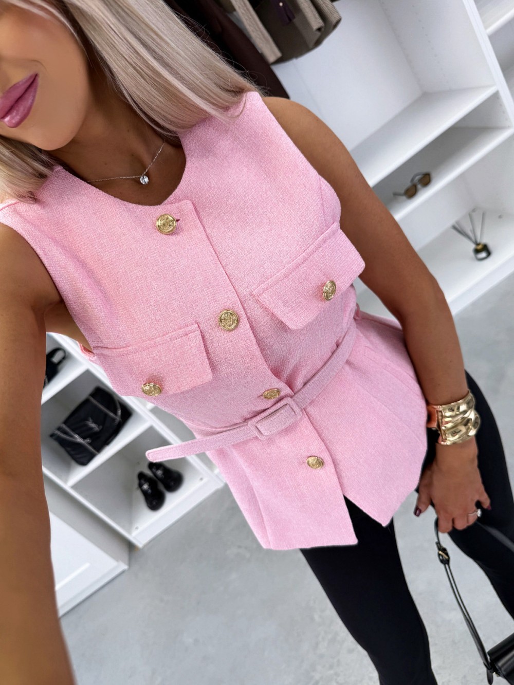 Kamizelka z paskiem w formie kurtki (Biały, M/L)