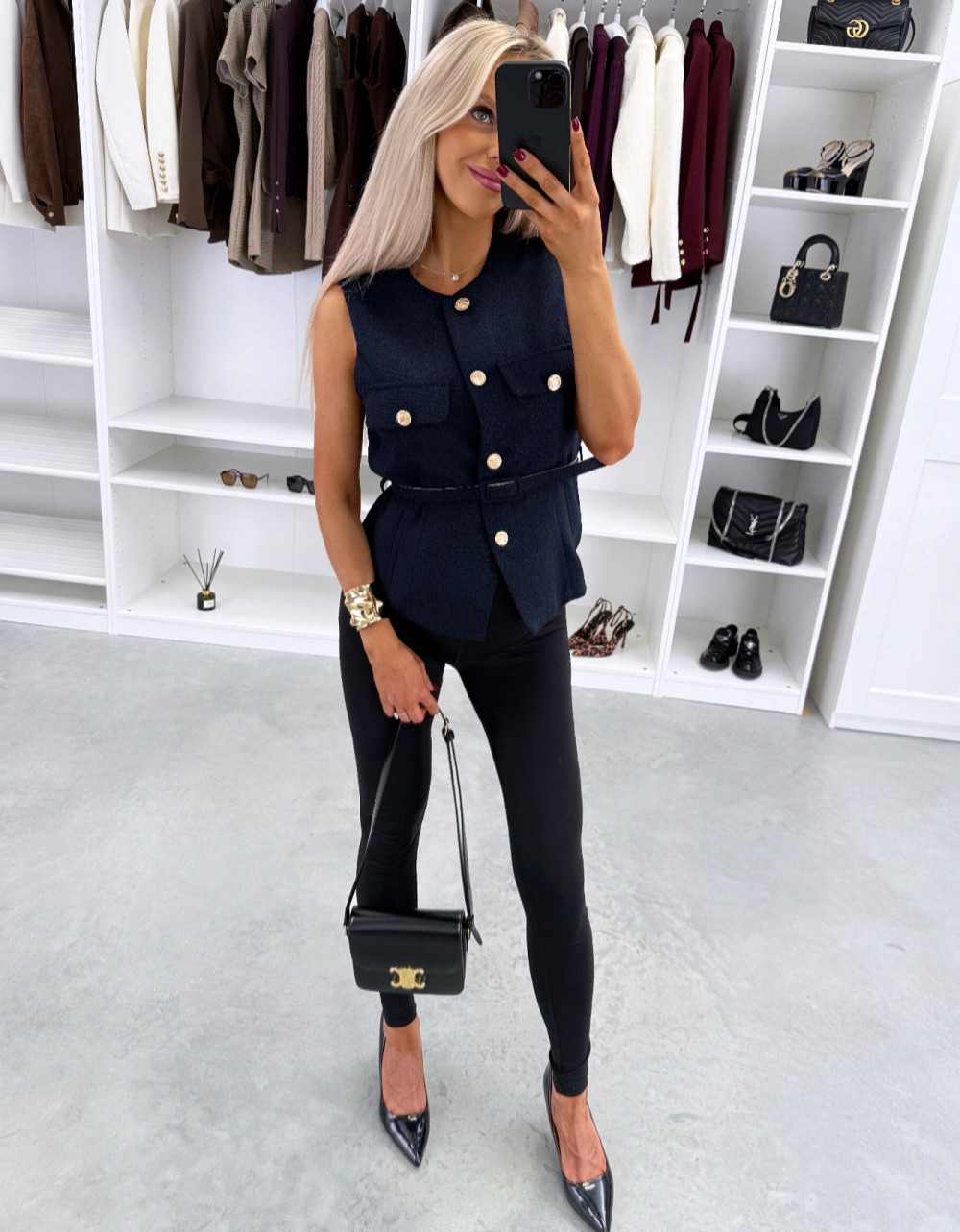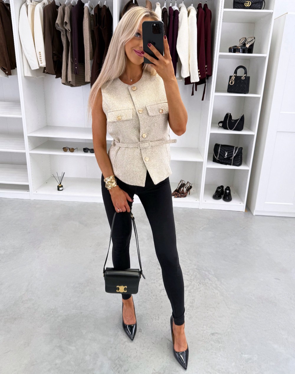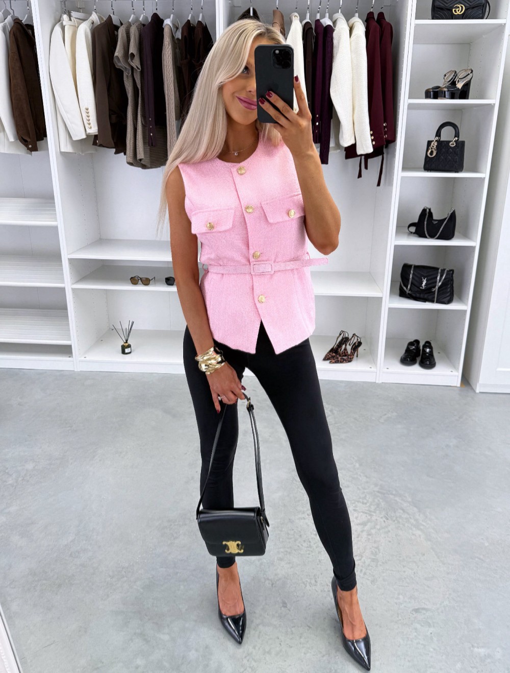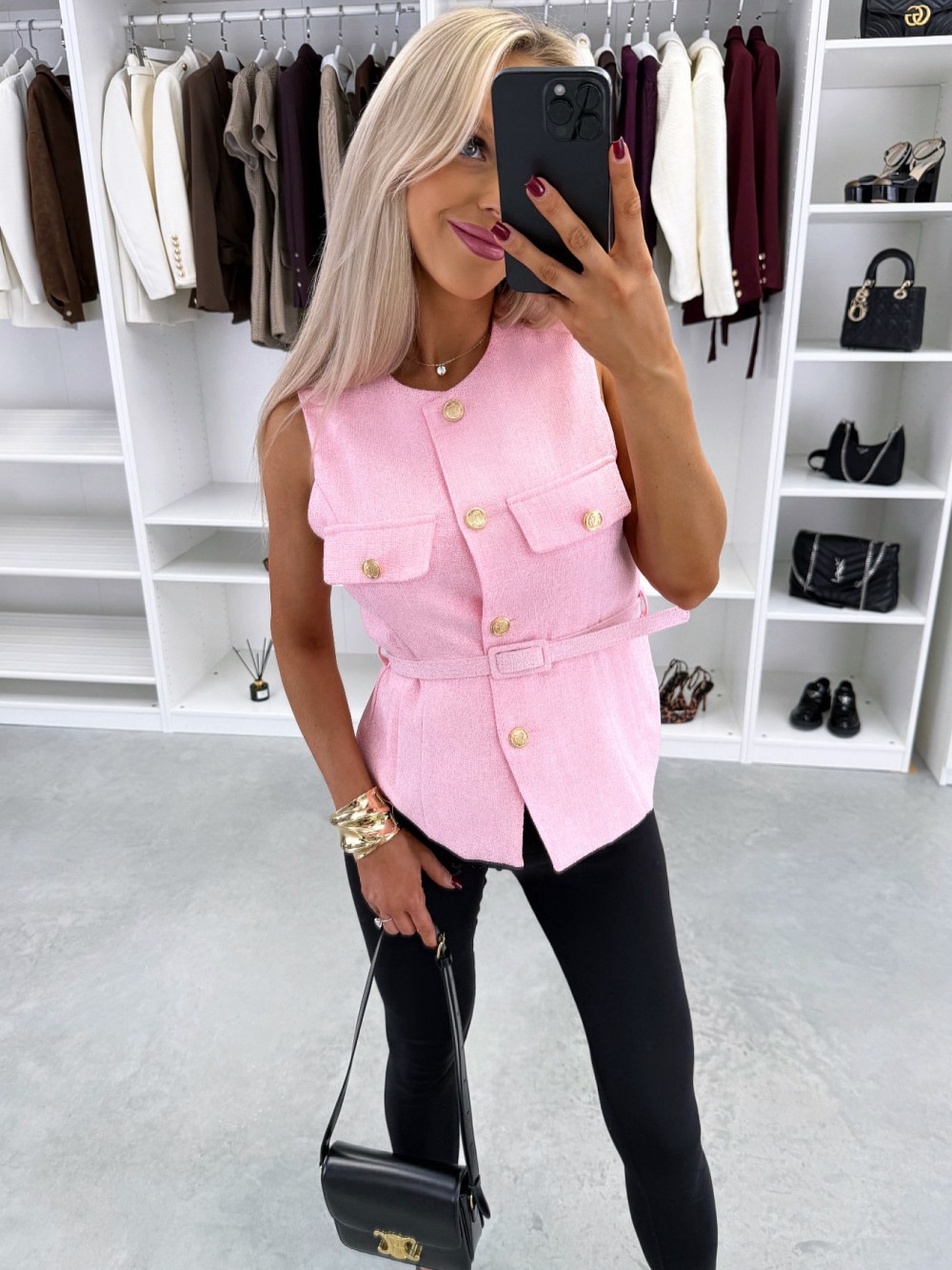 Kamizelka z paskiem w formie kurtki (Biały, M/L)