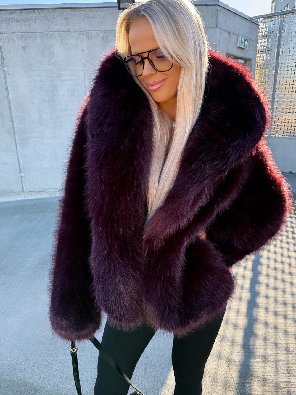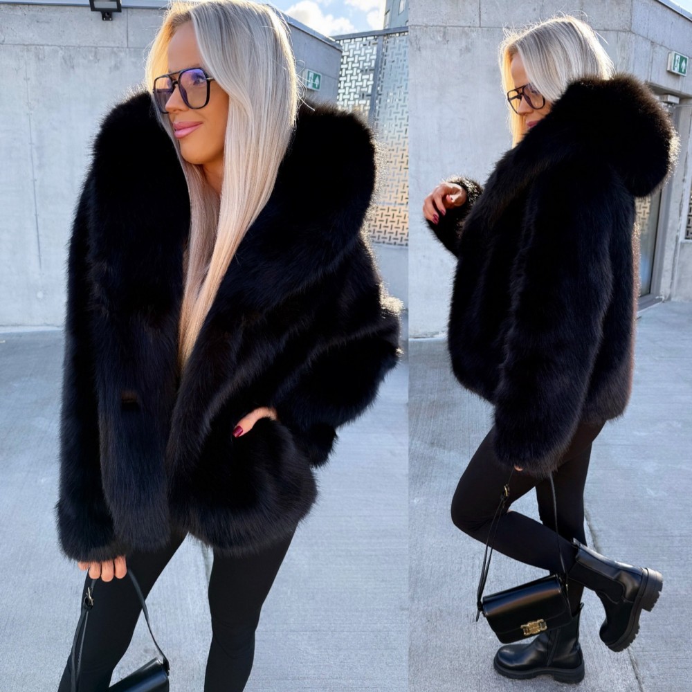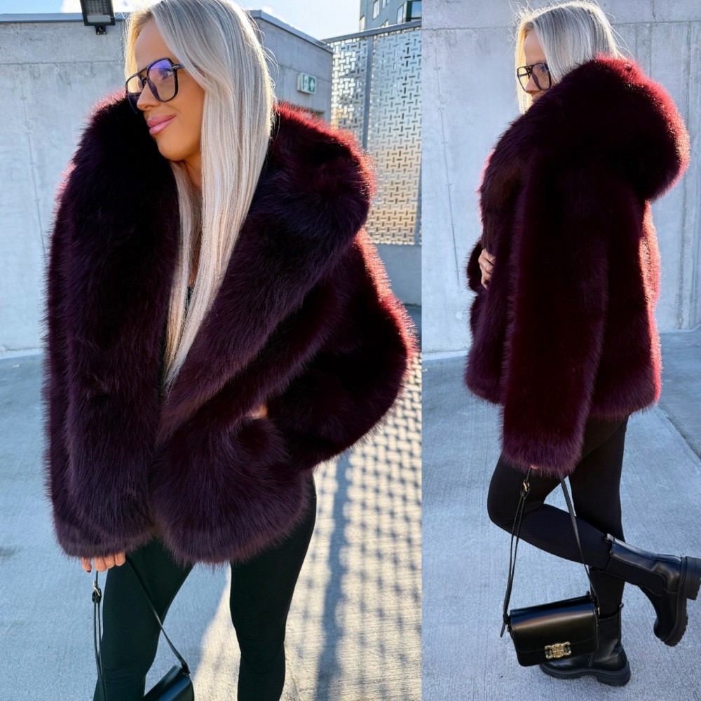 Luksusowy płaszcz ze sztucznego futra z kapturem (Jeden rozmiar, Jasny beż)