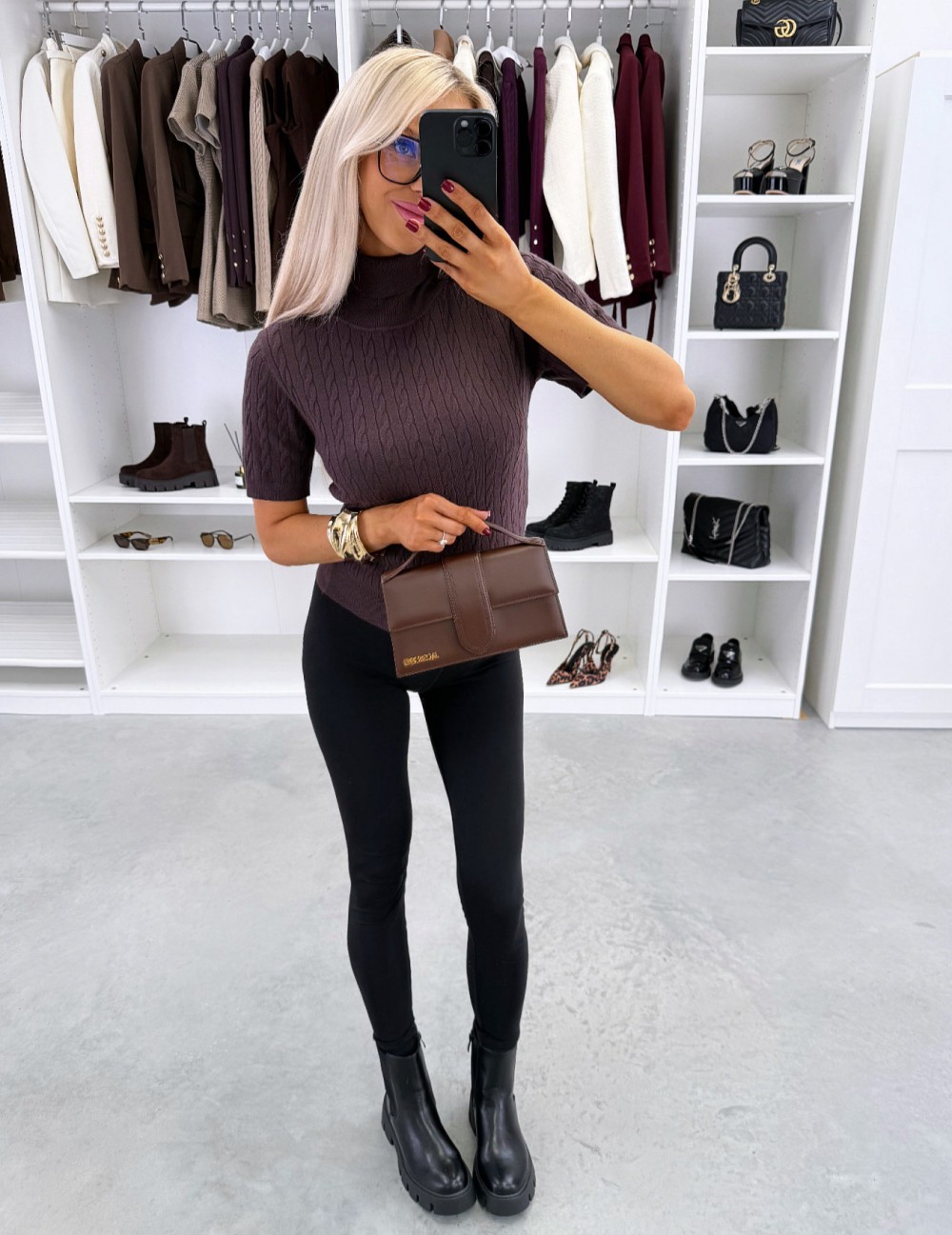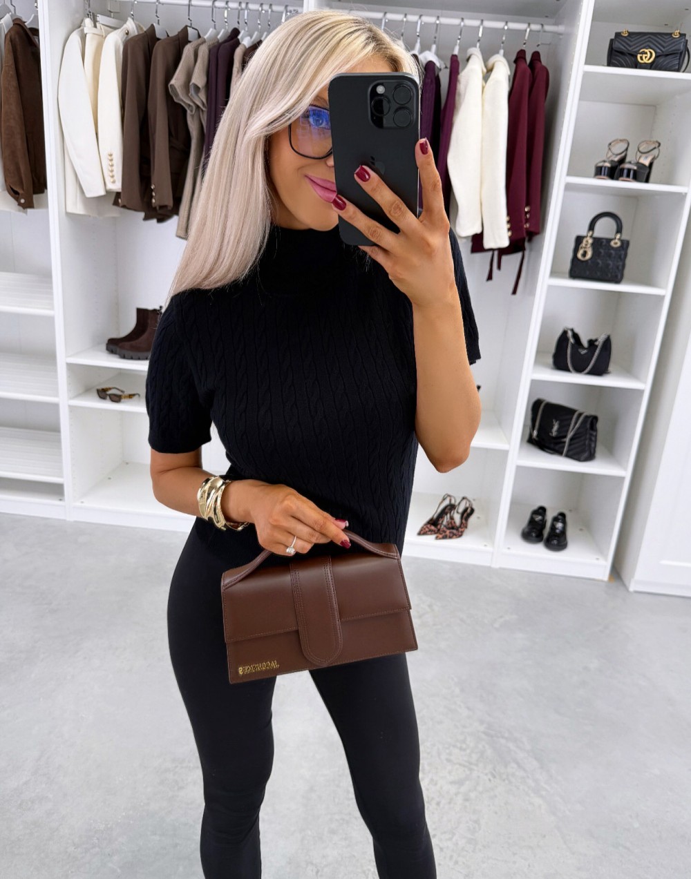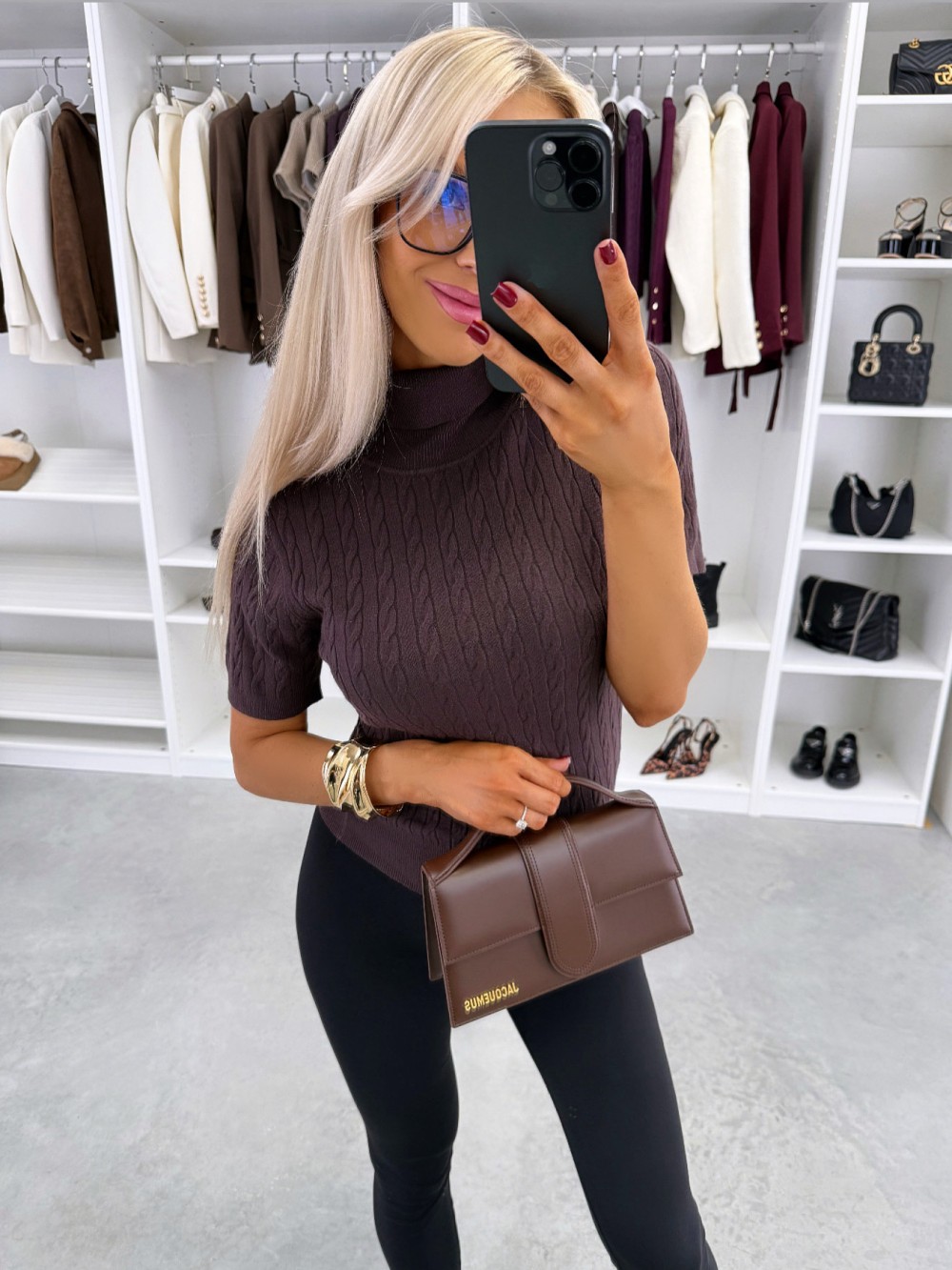 Sweter z krótkim rękawem (Jeden rozmiar, Brązowy)