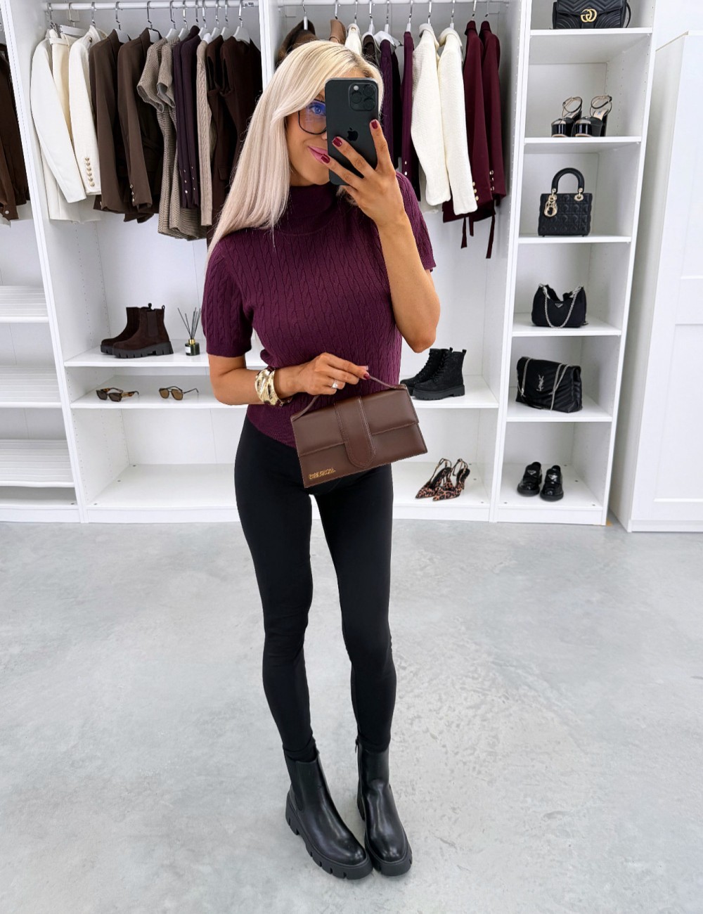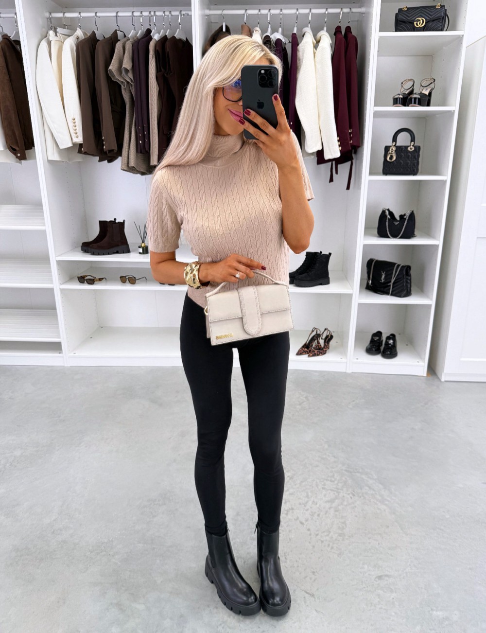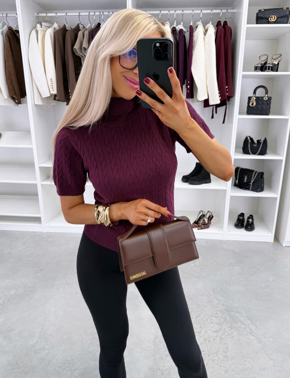 Sweter z krótkim rękawem (Jeden rozmiar, Brązowy)