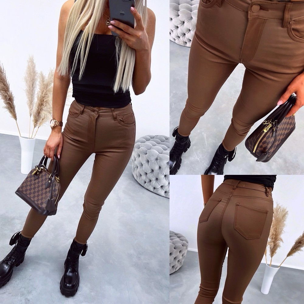 Skórzane strechowane spodnie (Czarny, XL)