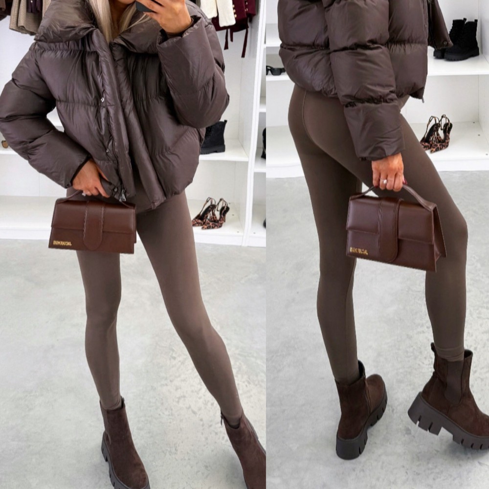 Legginsy modelujące z wysokim stanem i elastycznym wykończeniem (Brązowy, XS/S)