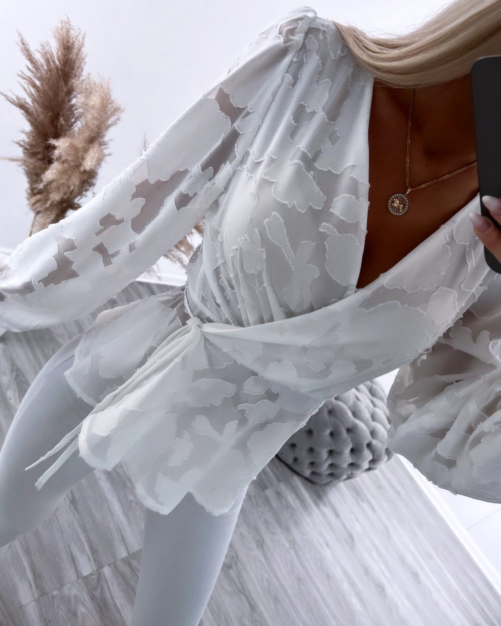 Блузка в мелкую клетку с цветочным узором (Черный, M/L)