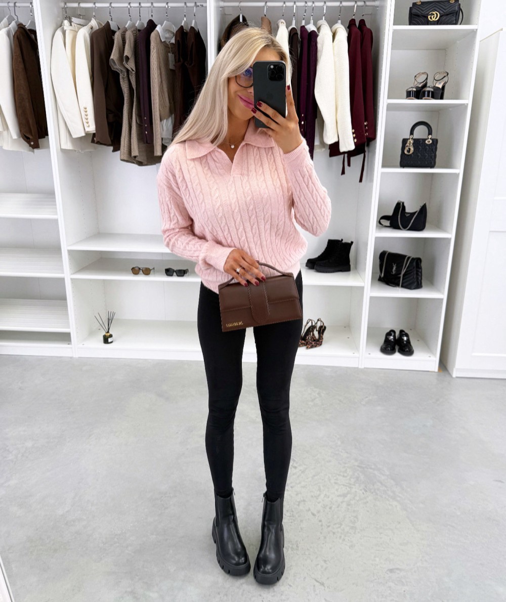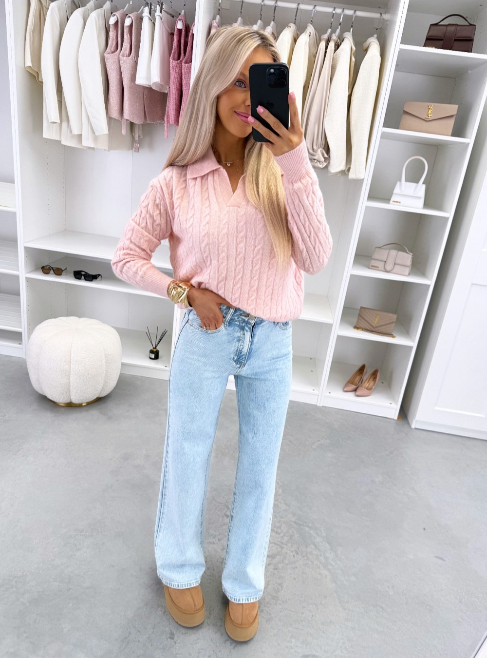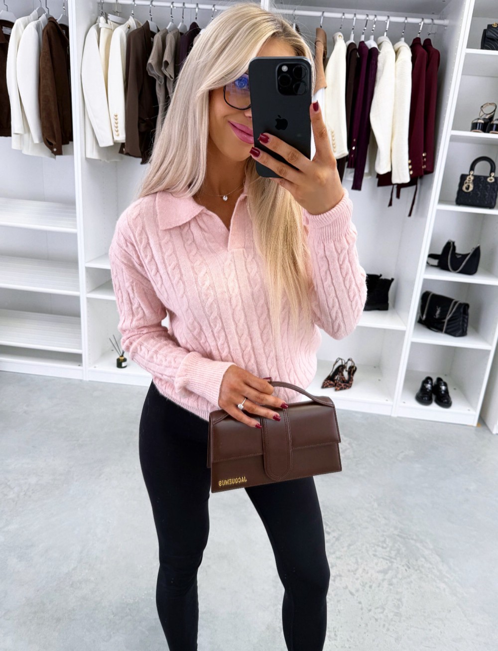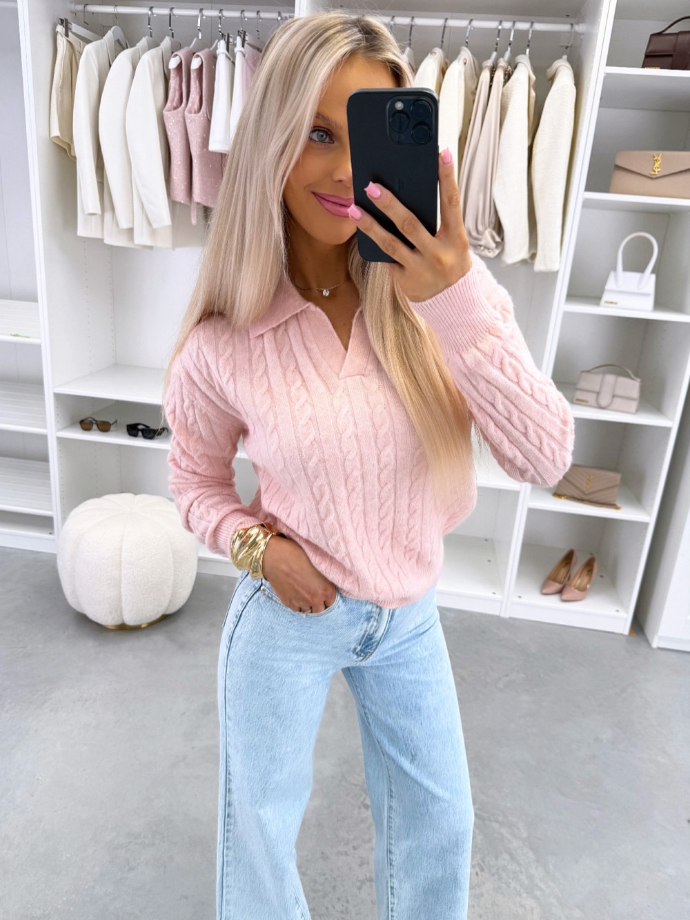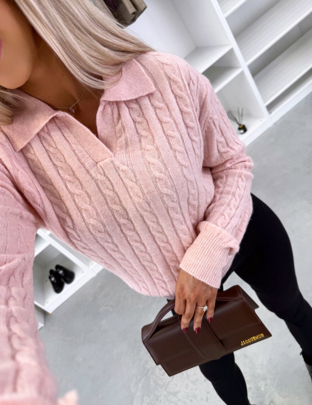 Мягкий свитер с V-образным вырезом (Один размер, Розовый)