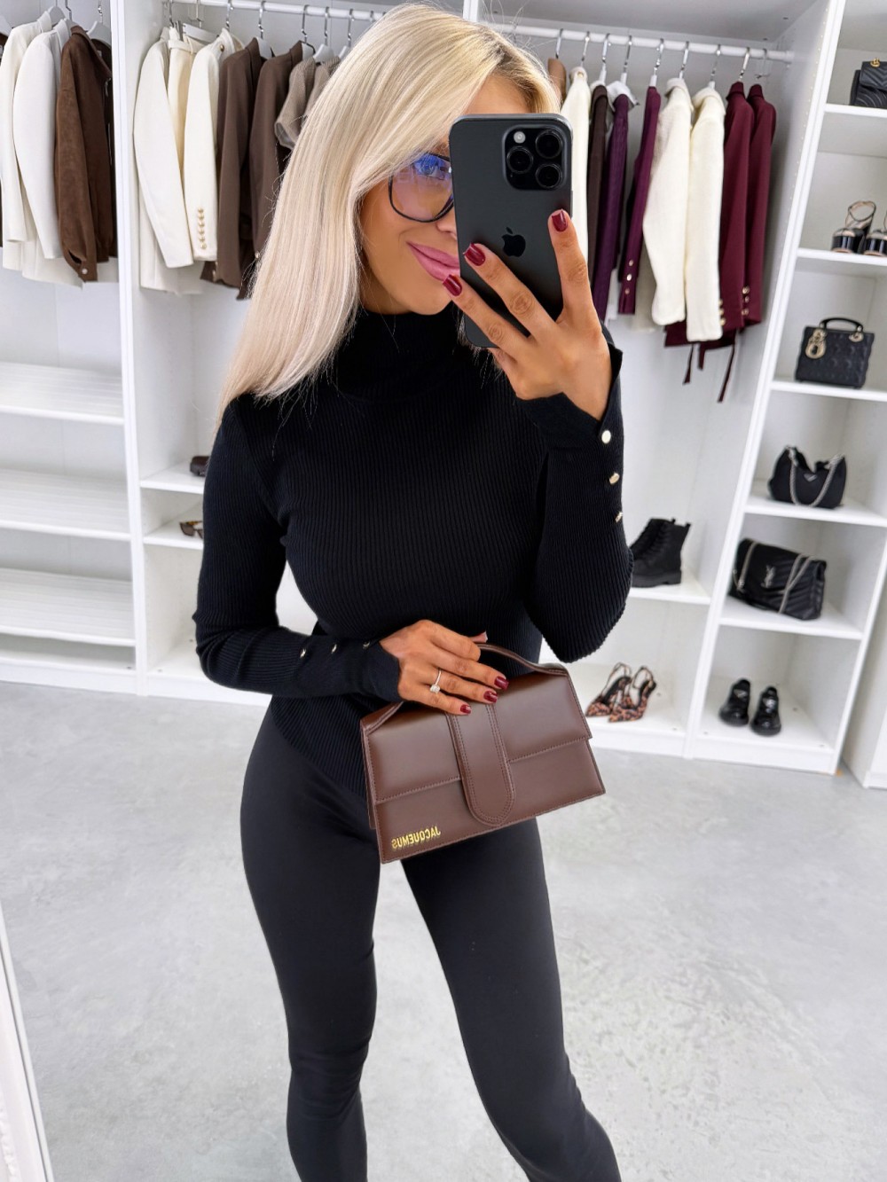 Мягкий эластичный свитер с высоким воротом (Один размер, Черный)