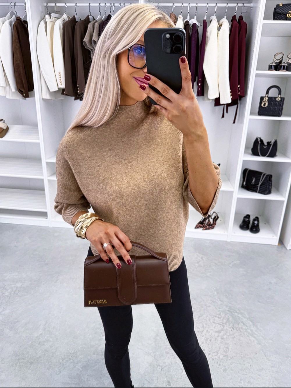 Уютный свитер с высоким воротом (Один размер, Розовый)