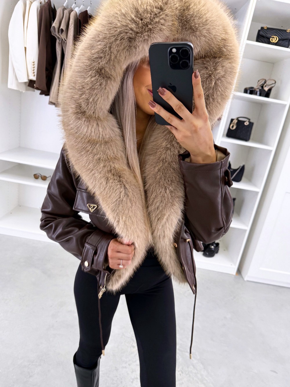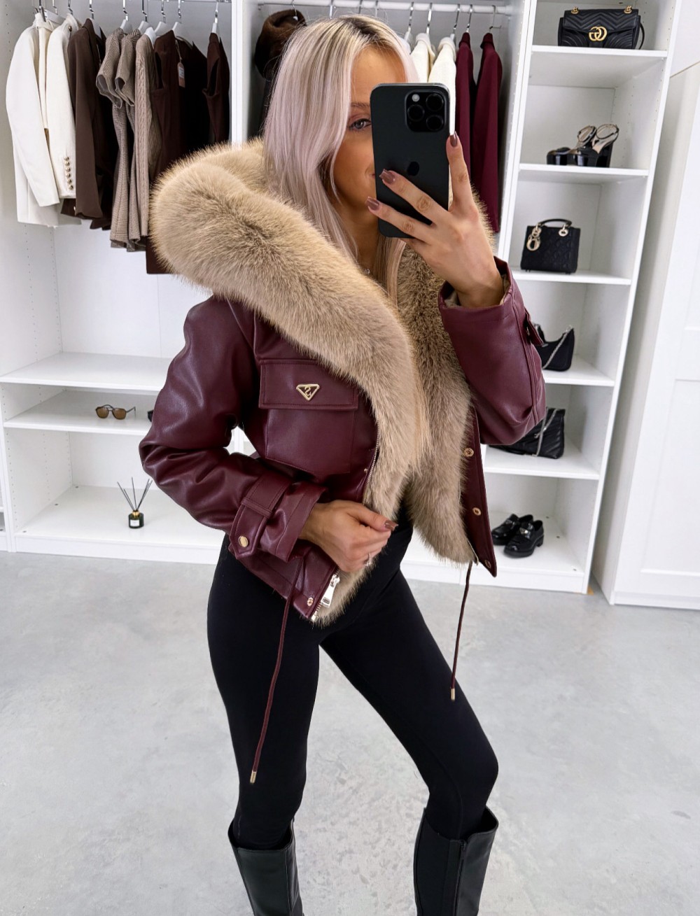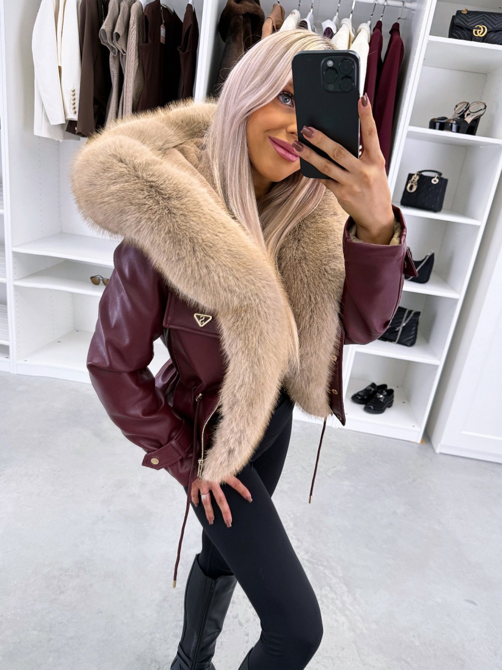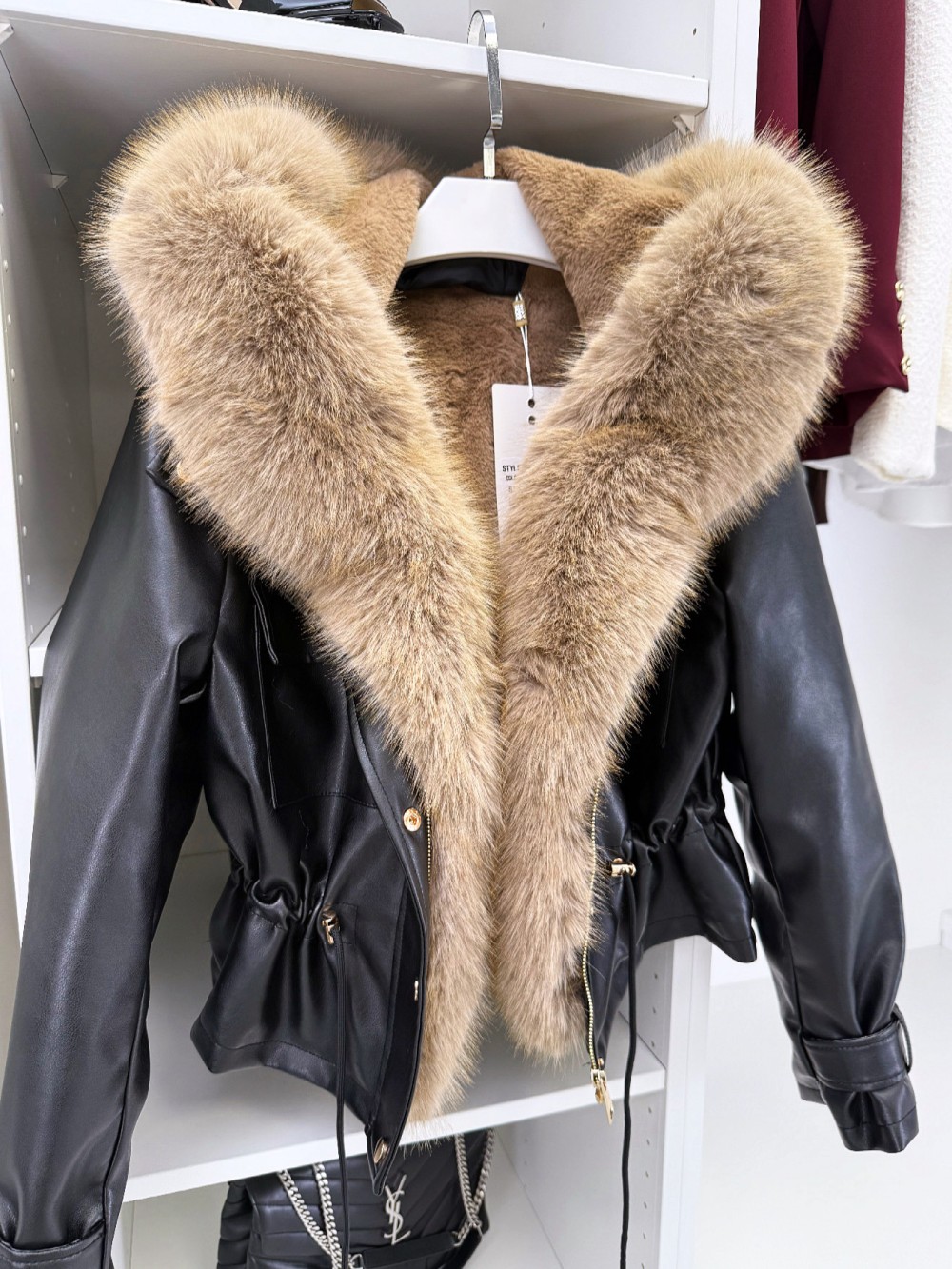 Парка с регулируемой талией и роскошным искусственным мехом (XS/S, темно-красный)