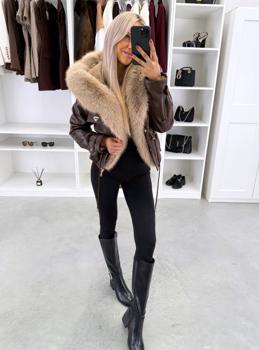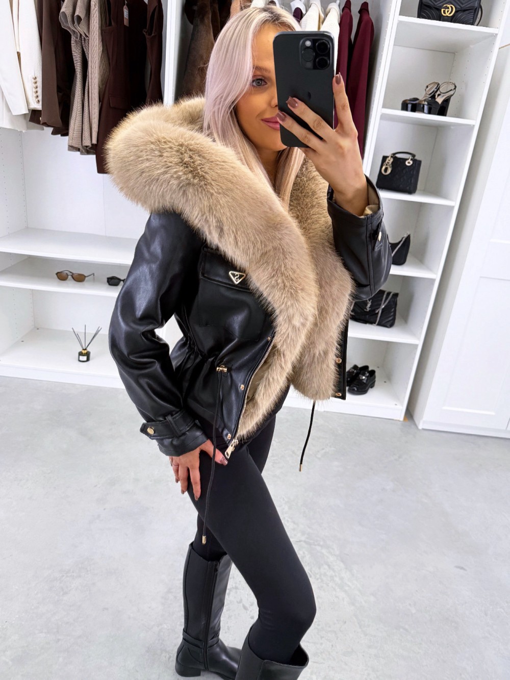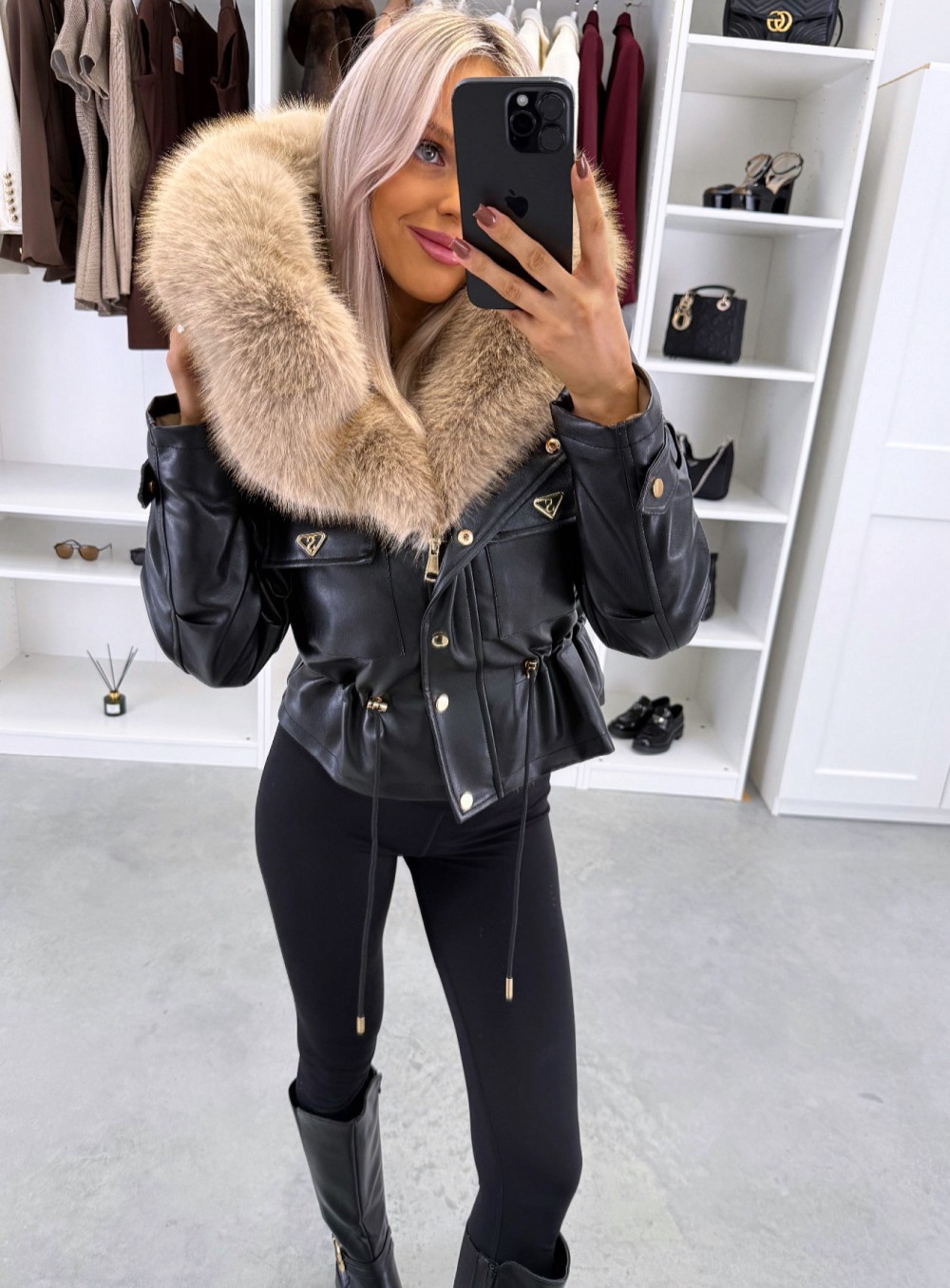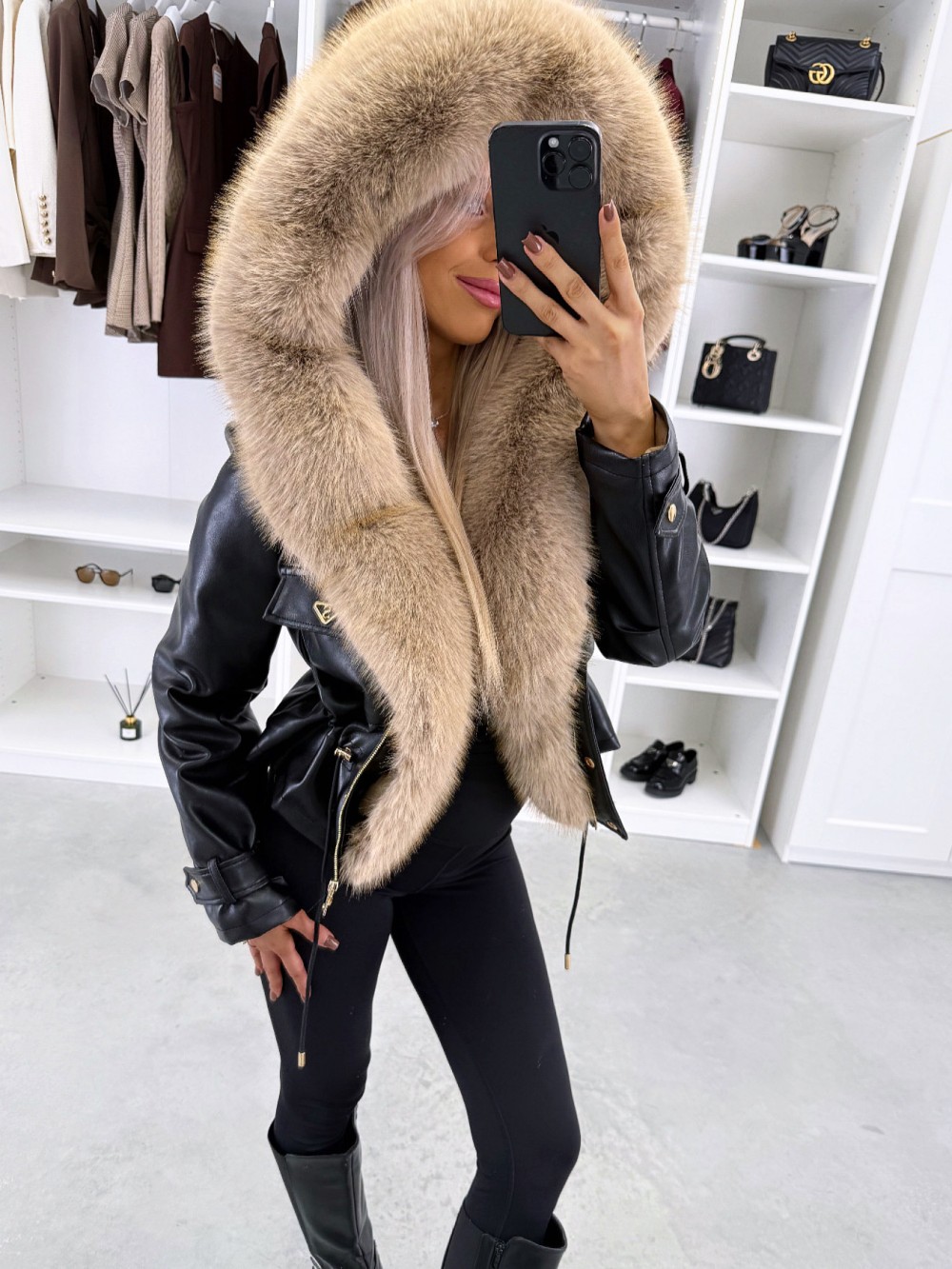 Парка с регулируемой талией и роскошным искусственным мехом (XS/S, темно-красный)