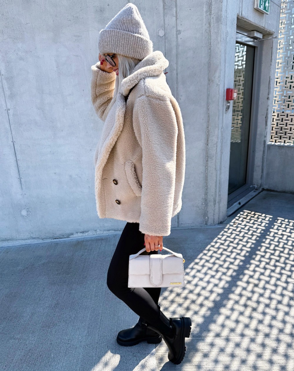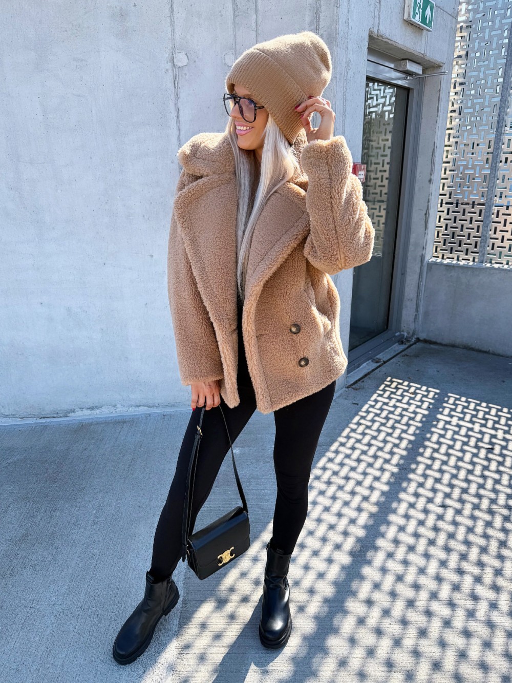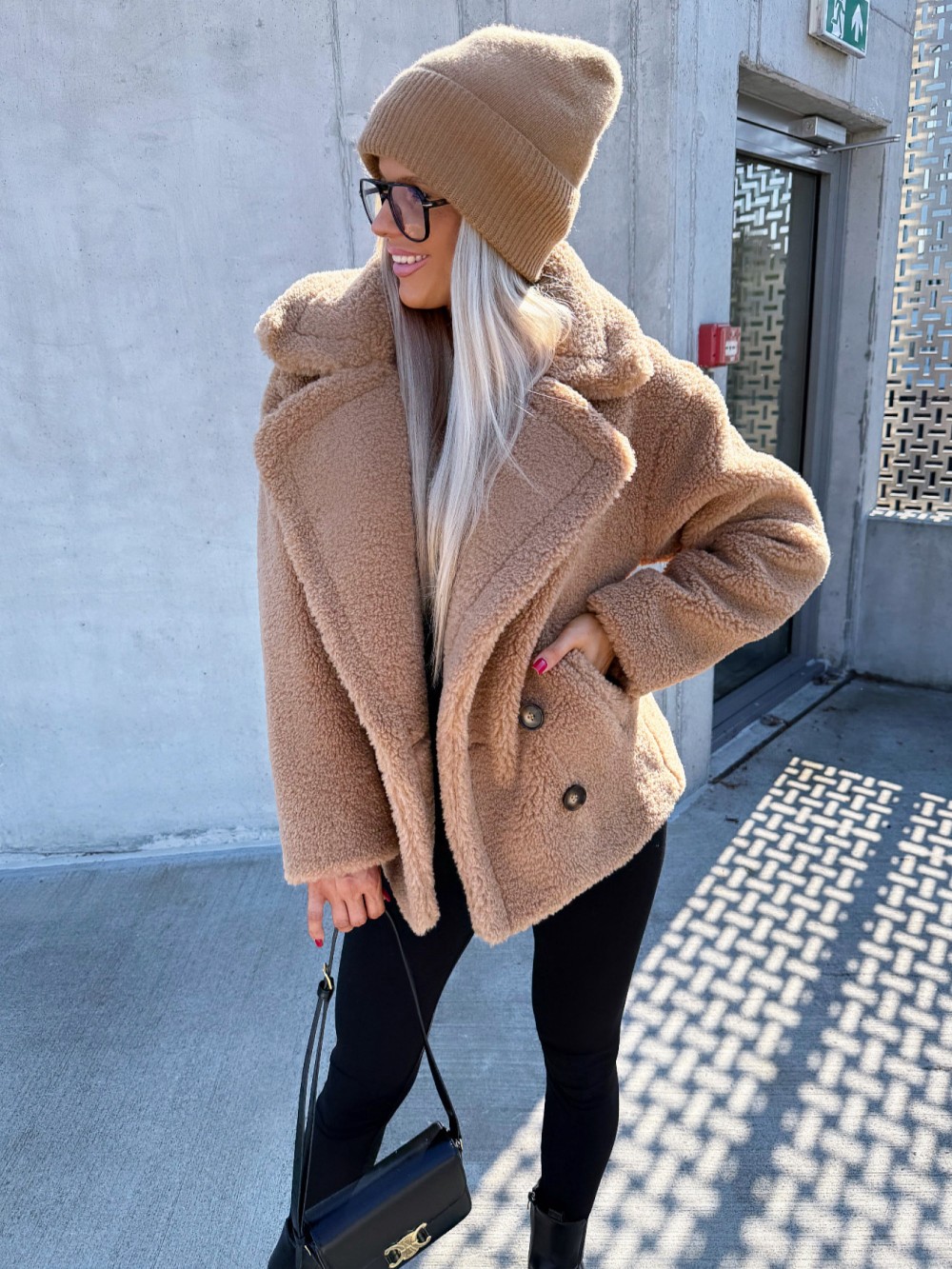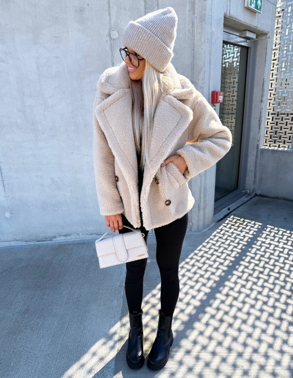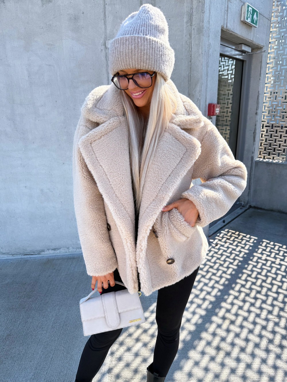 Укороченная уютная куртка из плюша (M, Бежевый)
