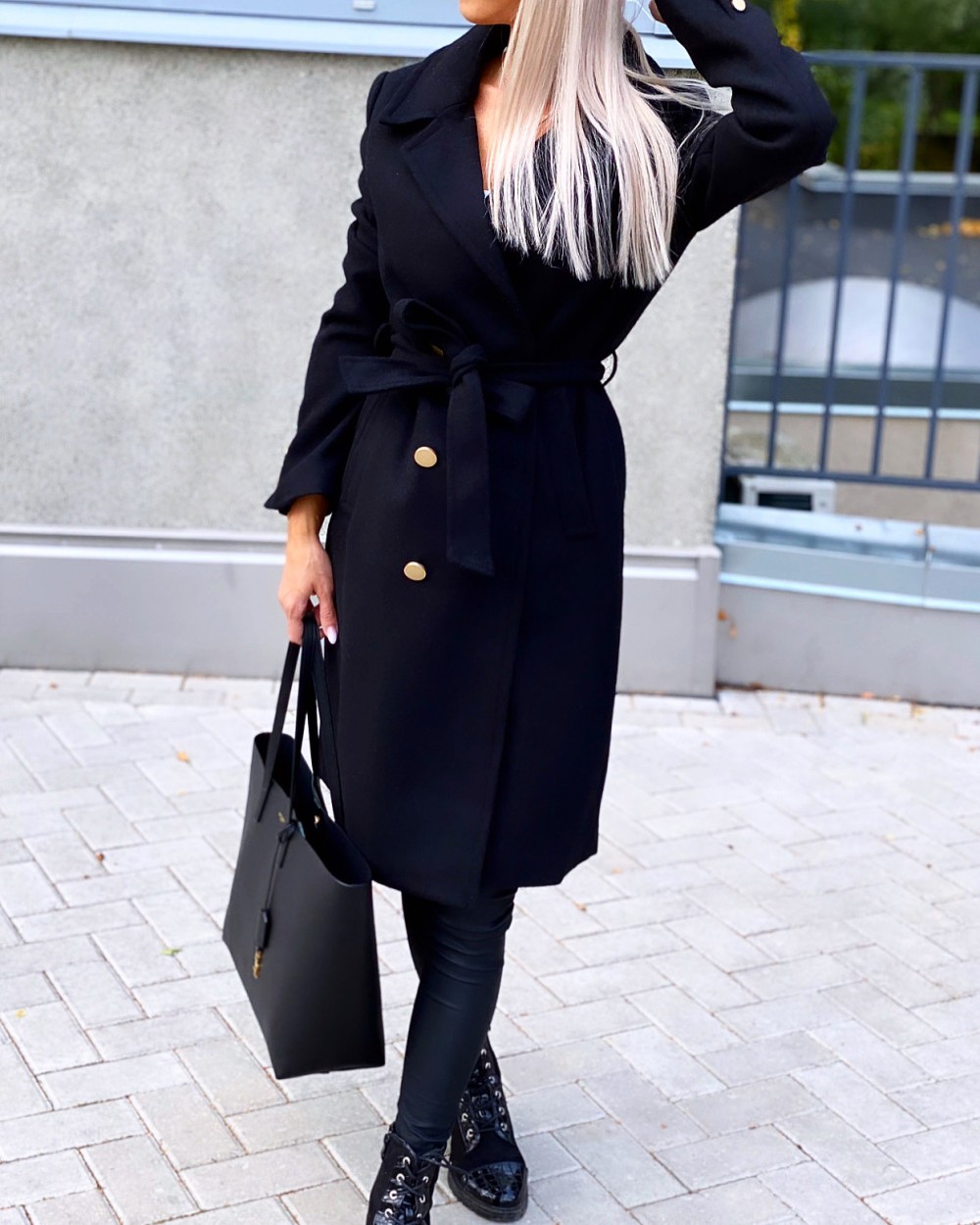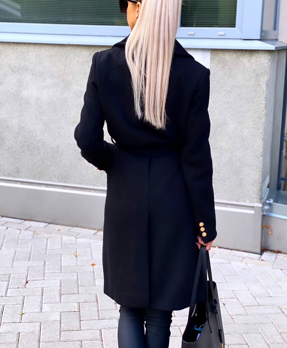 Шерстяное пальто с регулируемой талией (Черный, M/L)