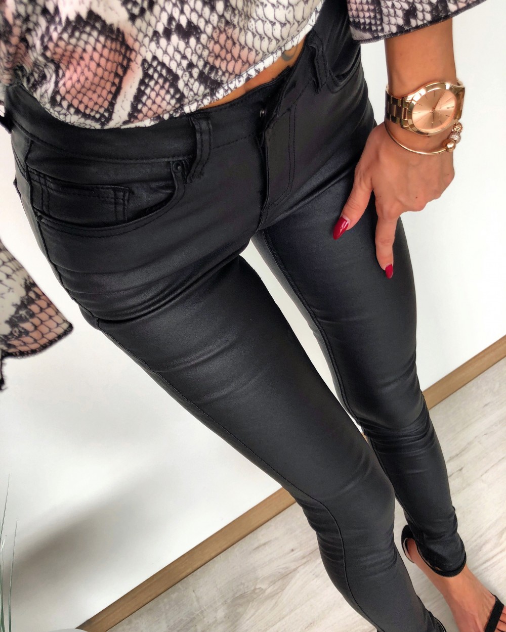 Эластичные штаны из искусственной кожи (L, Черный)