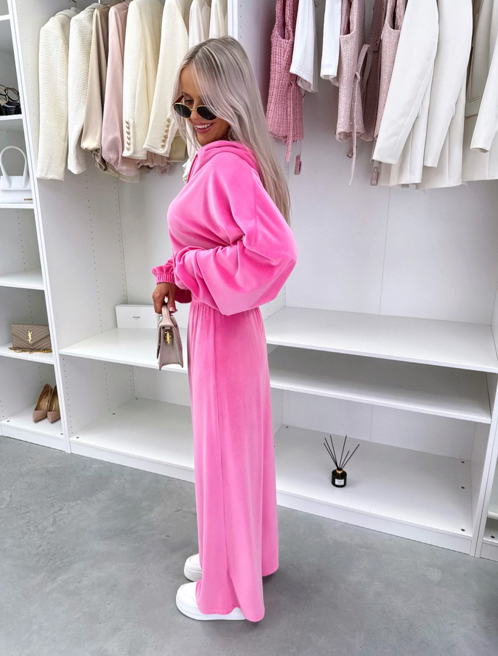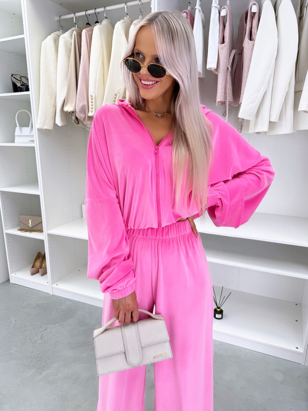 Велюровый спортивный костюм из двух предметов (Один размер, Фуксии)